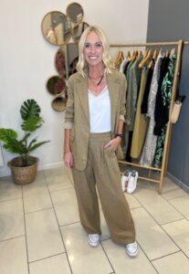 This week we are focusing on pieces to carry forward through the seasons. Staple pieces you will wear again and again. We have some beautiful linen mix pieces perfect for the Warmer weather. A fab trouser suit, great day dresses and we are in love with that gorgeous leisure wear for comfy days or travelling !