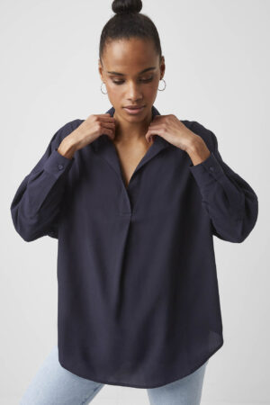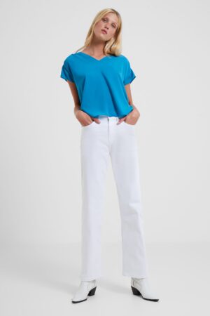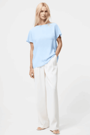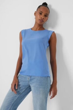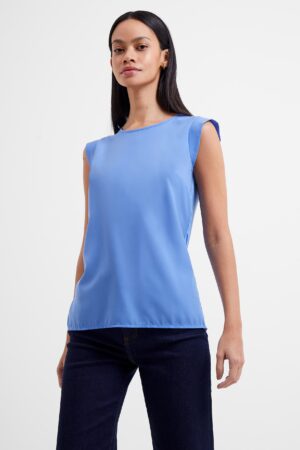 Caprina Crepe Crew Neck Top Cornflower Blue