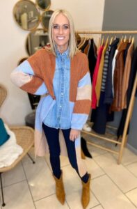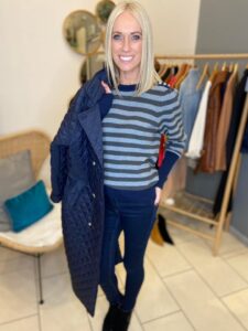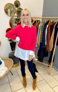 While we love the sequins and glam of the festive season, this week (maybe influenced by Barra) we are choosing cosy! We are thinking family day trips, winter walks, Cosy nights in by the fire with friends. Here Mary shows us some of our gorgeous new knits in beautiful colours. Layer with a shirt or gilet for instant chic. And off course Mary had to add in a dress … a fab choice for Christmas Day! Cosy, comfort and stylish, the epitome of Divine ❤️