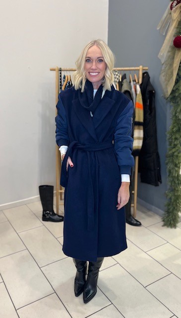 Classics with a twist in navy wrap coat & lots of fabulous accessories to complete the looks. And don’t forget to boot up!