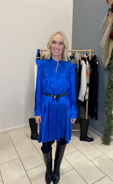 1:Qeleigh dress electric blue €69 Freja suede Belt €50 Mya knee Boot €260