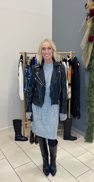 2: My Essential Leather Jacket €395 Lamora Knit Dress €90 Mya Boot €260