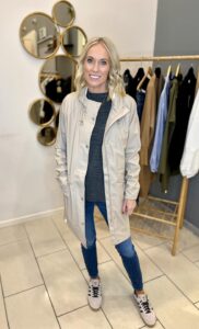 1. Tazi raincoat Doeskin, Charcoal ribbed jumper