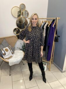 This week our gorgeous Elaine showcases some of our newest arrivals. Fab day dresses and knitwear for over the Christmas period and beyond. We always recommend at this stage of the season to buy pieces you can carry through to next season.