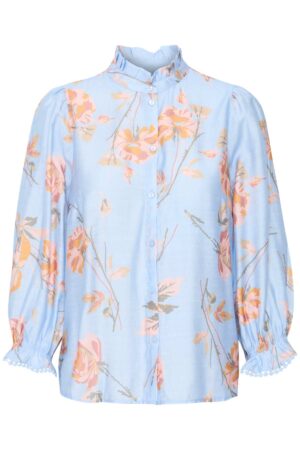Karlani Ruffle Neck Shirt Blue Yonder