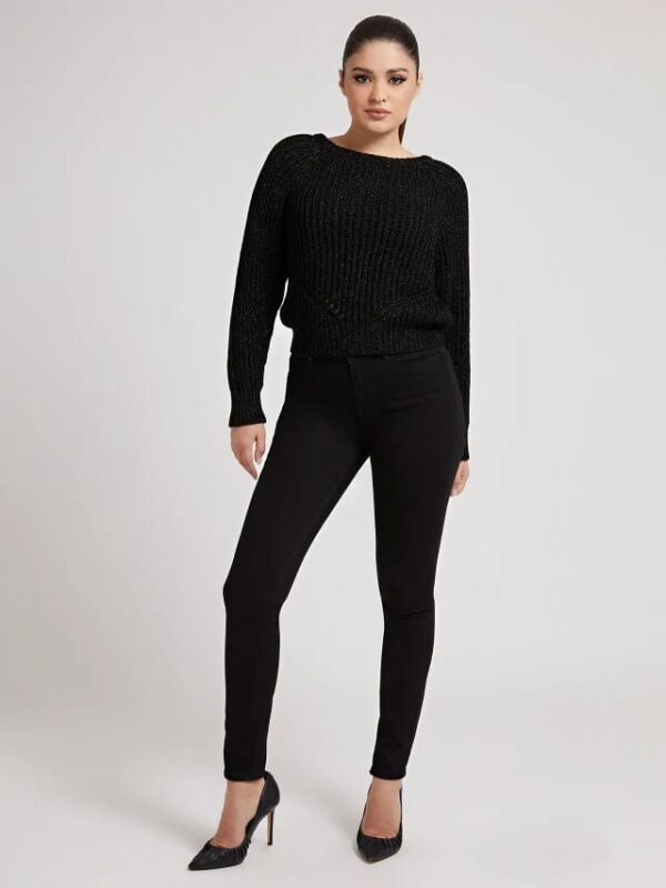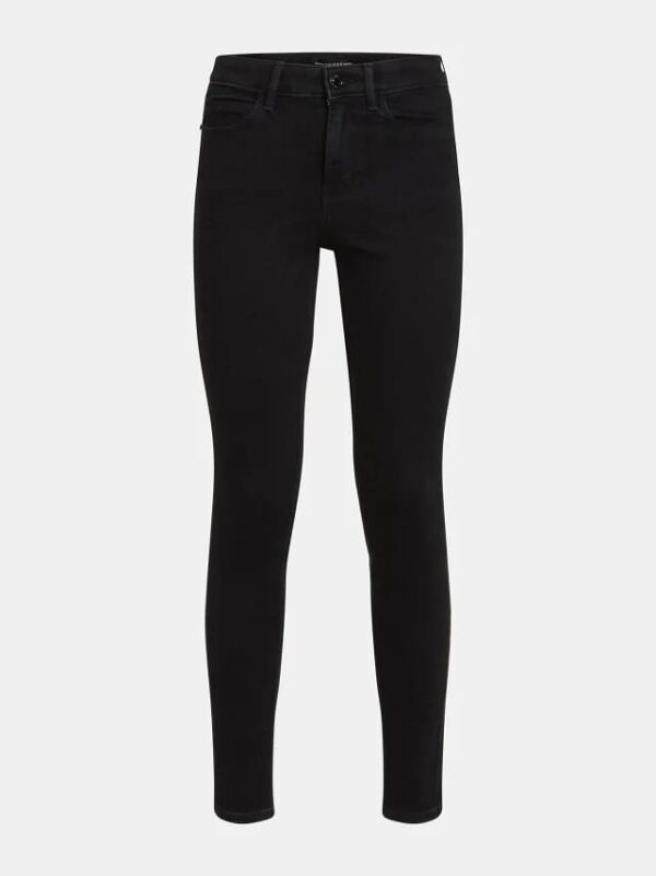 High Waist stretch cotton denim jean. Skinny fit. Classic 5-pockets. Front zip and button fastening.