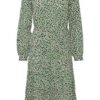 Sweet green printed dress, perfect for the autumn season. Long sleeve, femine shape, round neck.