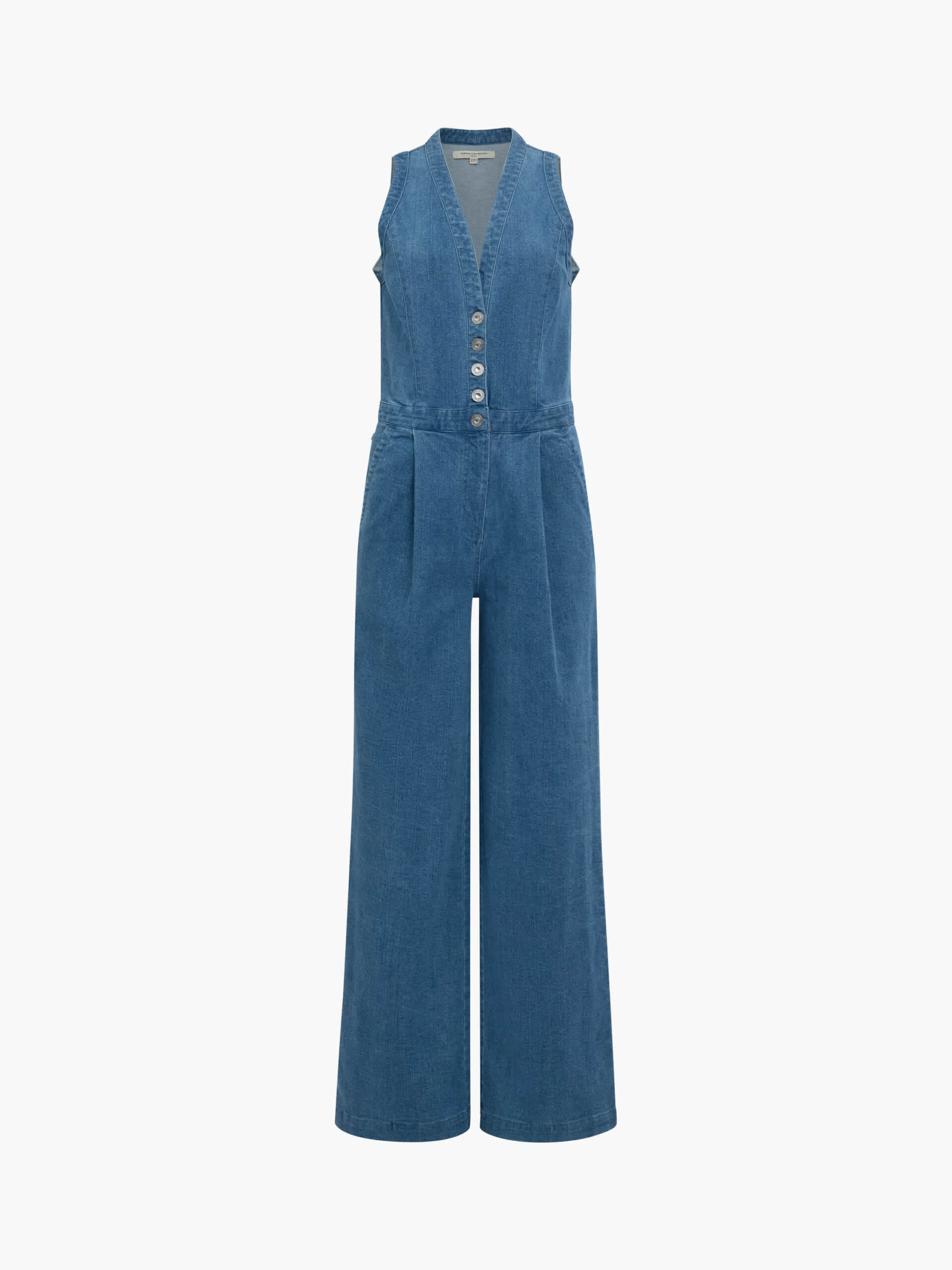 Arywoode Denim V Neck Jumpsuit pairs a deep v-neckline and metal branded buttons with wide legs featuring 4 pockets and seam detailing, for a boldly structured finish.