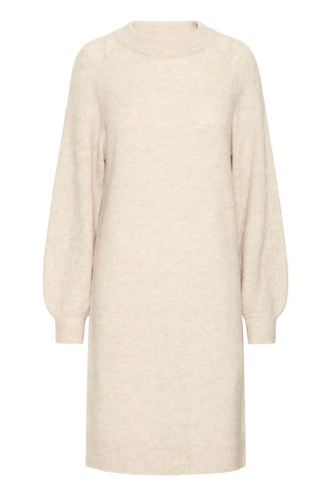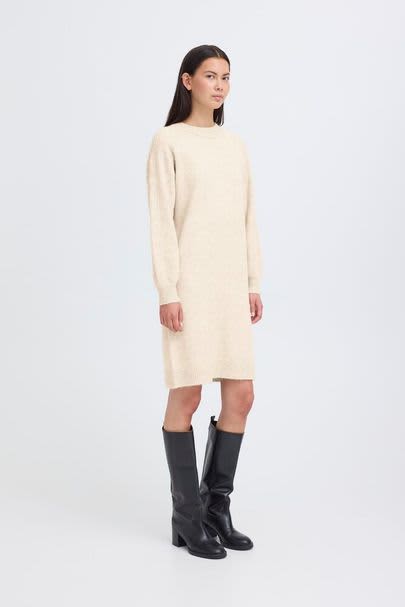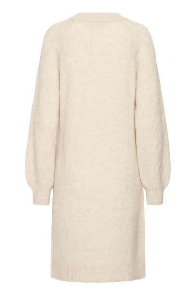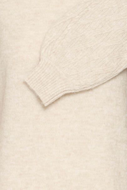 This oatmeal round neck jumper dress is the perfect addition to your Winter wardrobe. It features a beautiful cable detail on the long sleeves and a ribbed neck, cuff, and hem. This dress sits nicely at the knee area and would look fabulous styled with tights and boots.