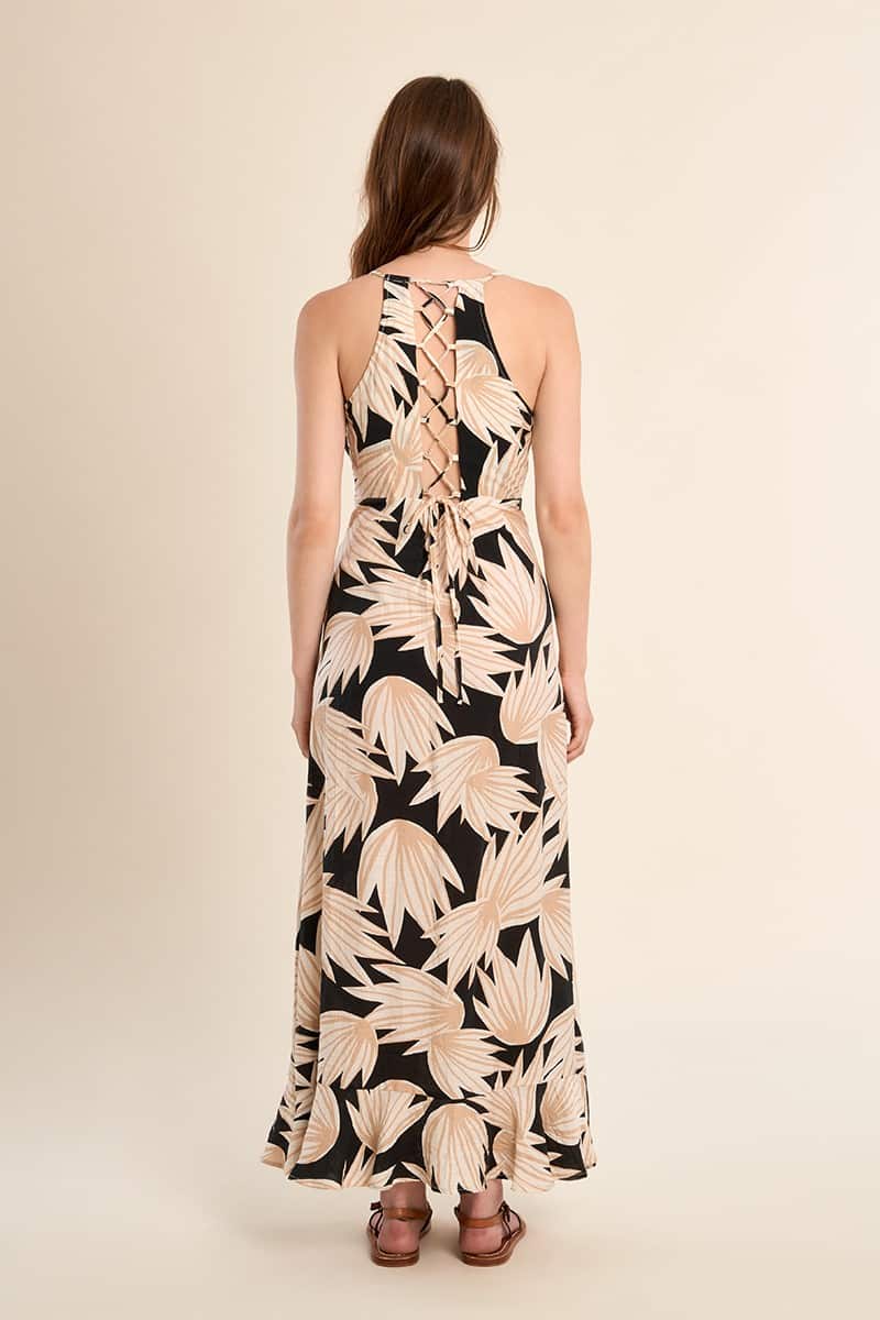 Perfect summer Maxi dress, with floral print V-neck, Adjustable straps, Open, lace-up back.