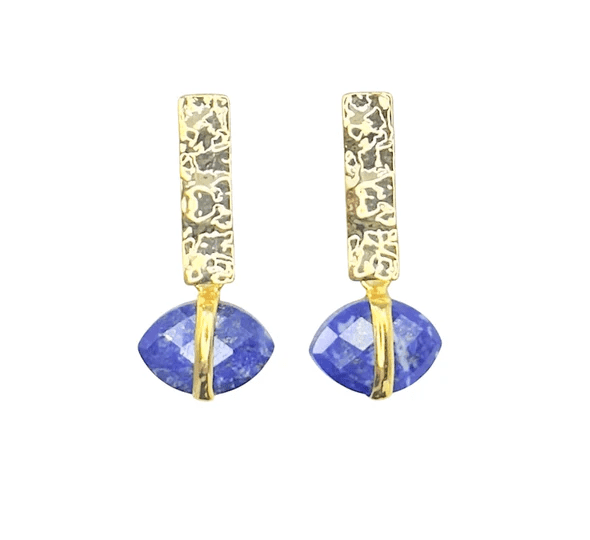 Ayin earrings are handcrafted using faceted lapis lazuli stones. Classic style. Gold plated brass. Lightweight design featuring studs.