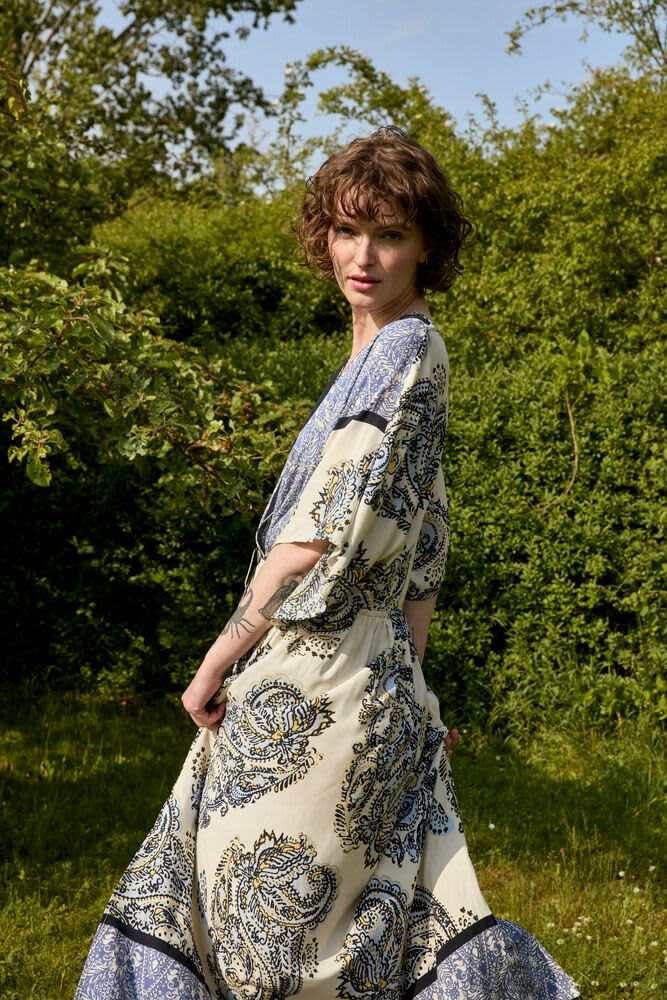 Super light and floaty maxi dress perfect for any sumemr occasion. Print has cream,blue and yellow tones.