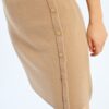 This knitted A-Line mini skirt features a button detail down the front. It is a beautiful neutral colour that is simple yet perfect to wear with tights and knits in the Winter. It features an elasticated waist making this skirt so easy to dress in and so comfortable.