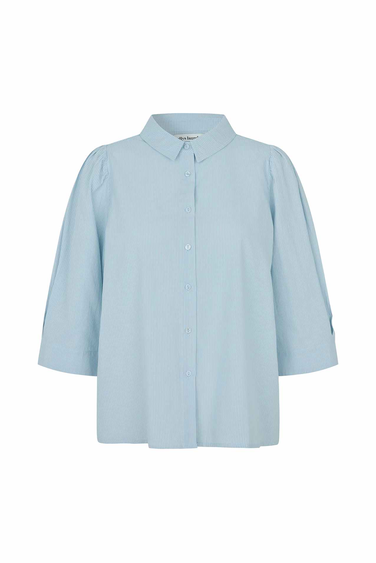 The Bono shirt is a classic from Lollys Laundry, known for its timeless charm. This version features a fine striped pattern and the well known flattering fit. It features a classic shirt collar, short sleeves with light volume and wide cuffs. It also has a button-through front with delicate buttons creating a relaxed and feminine silhouette. It is easy to style with both jeans and skirts.