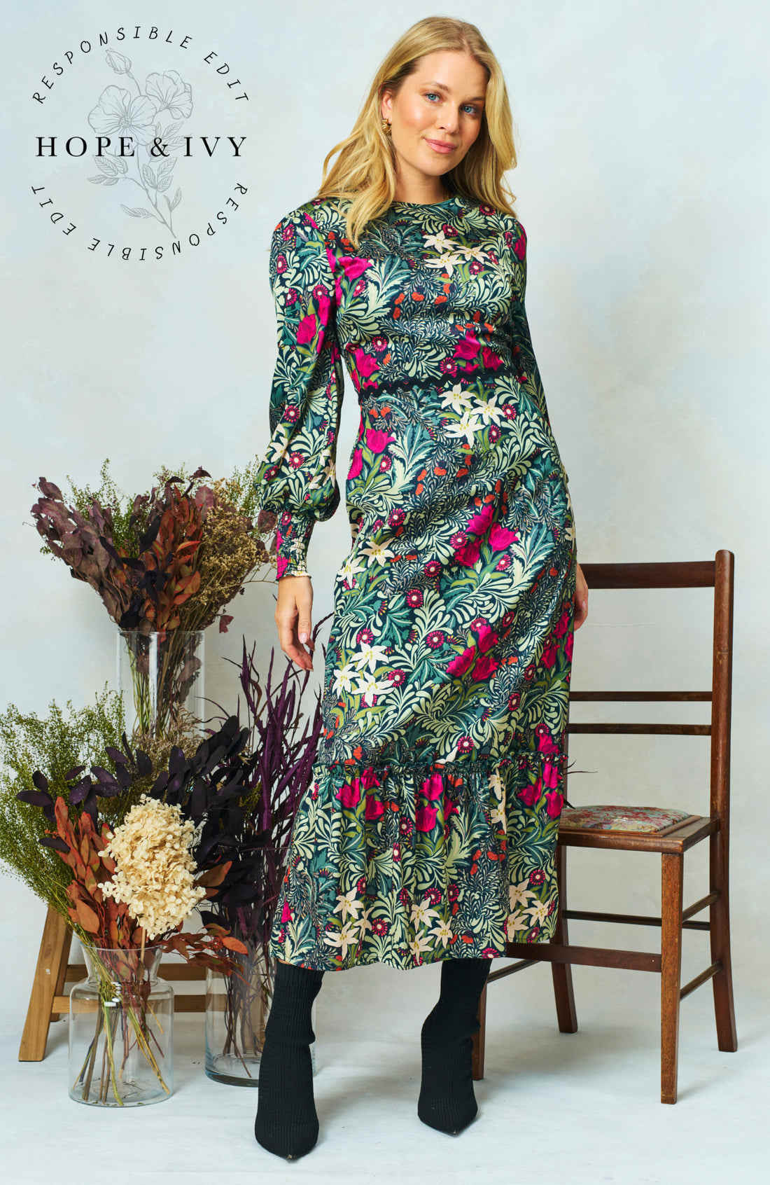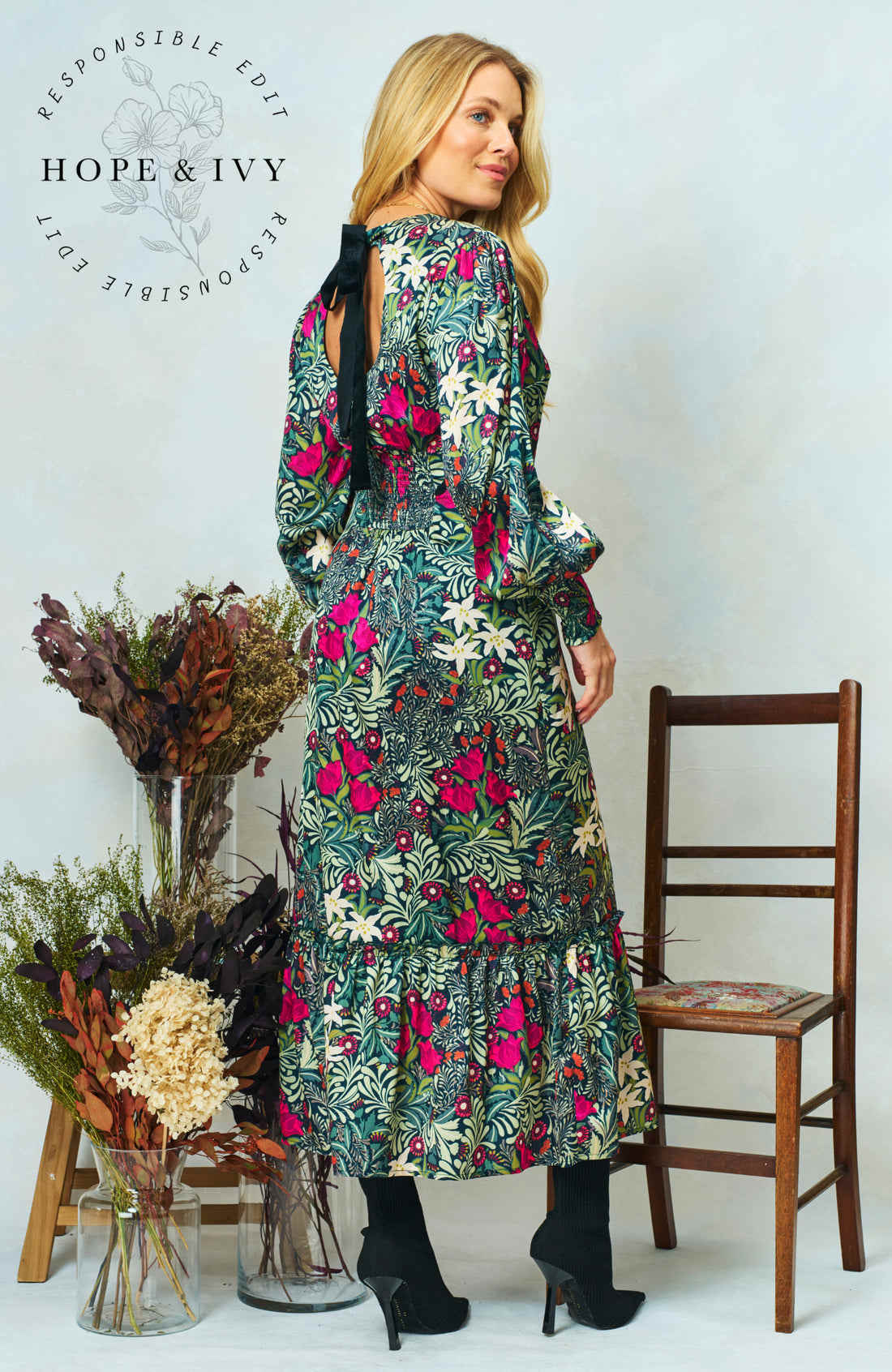 A timeless classic that marries the magic of William Morris prints with chic Hope & Ivy design, The Bramble offers a beautiful satin base, complete with a delicate velvet bow back and a shirred back panel for ease of wear. Featuring sweet velvet detailing across the waist and a figure skimming maxi skirt, this is an enchanting design that’s destined to capture hearts.