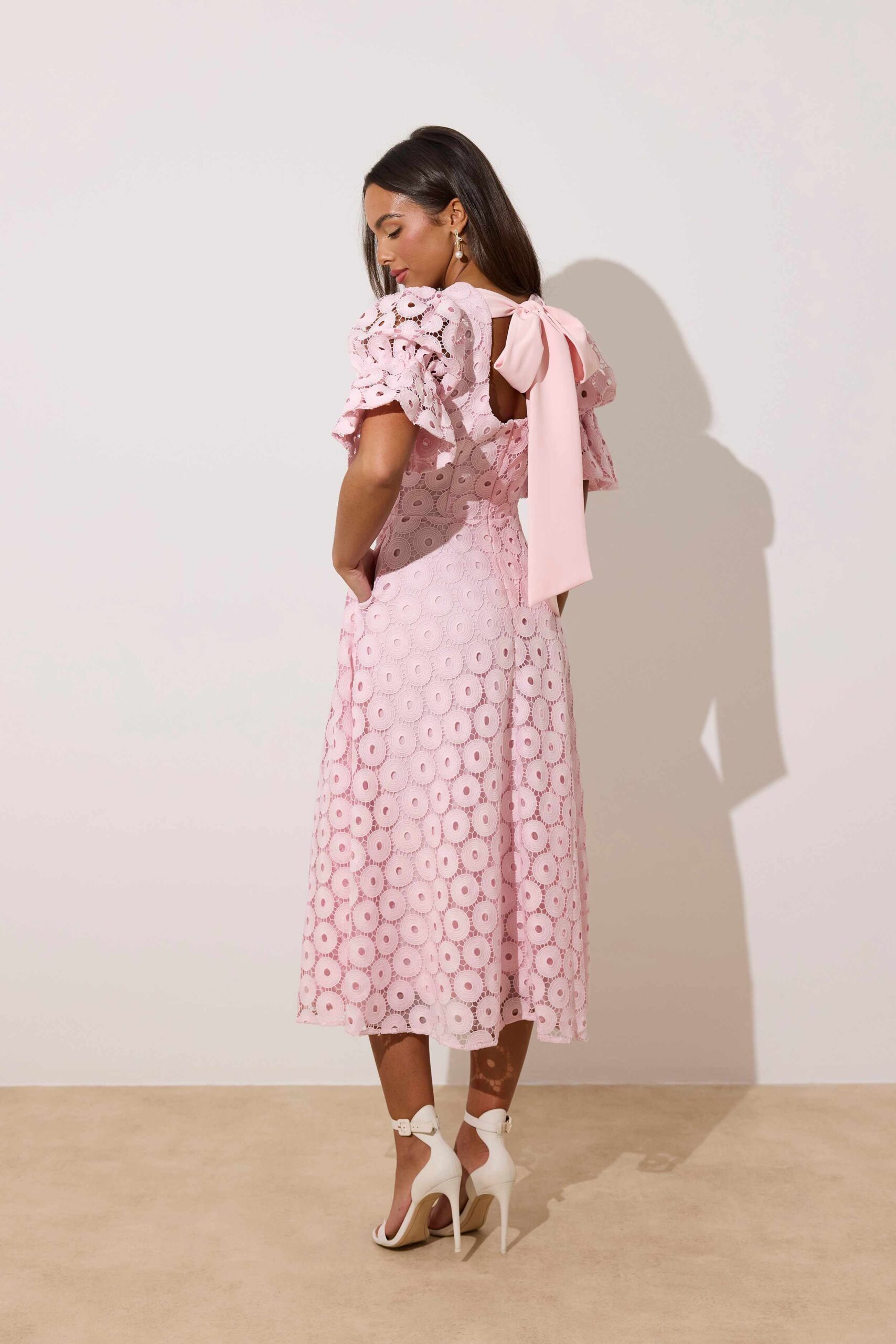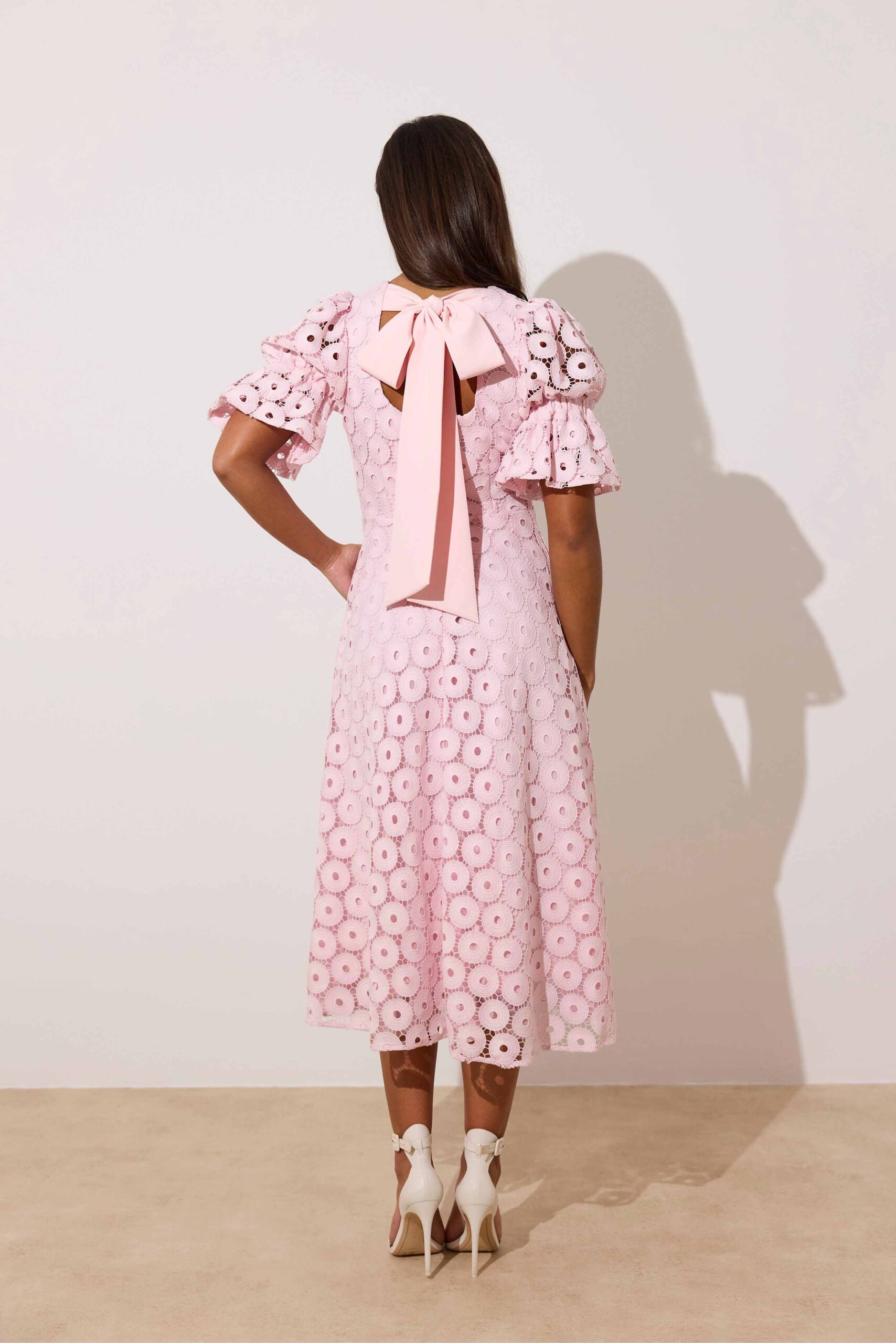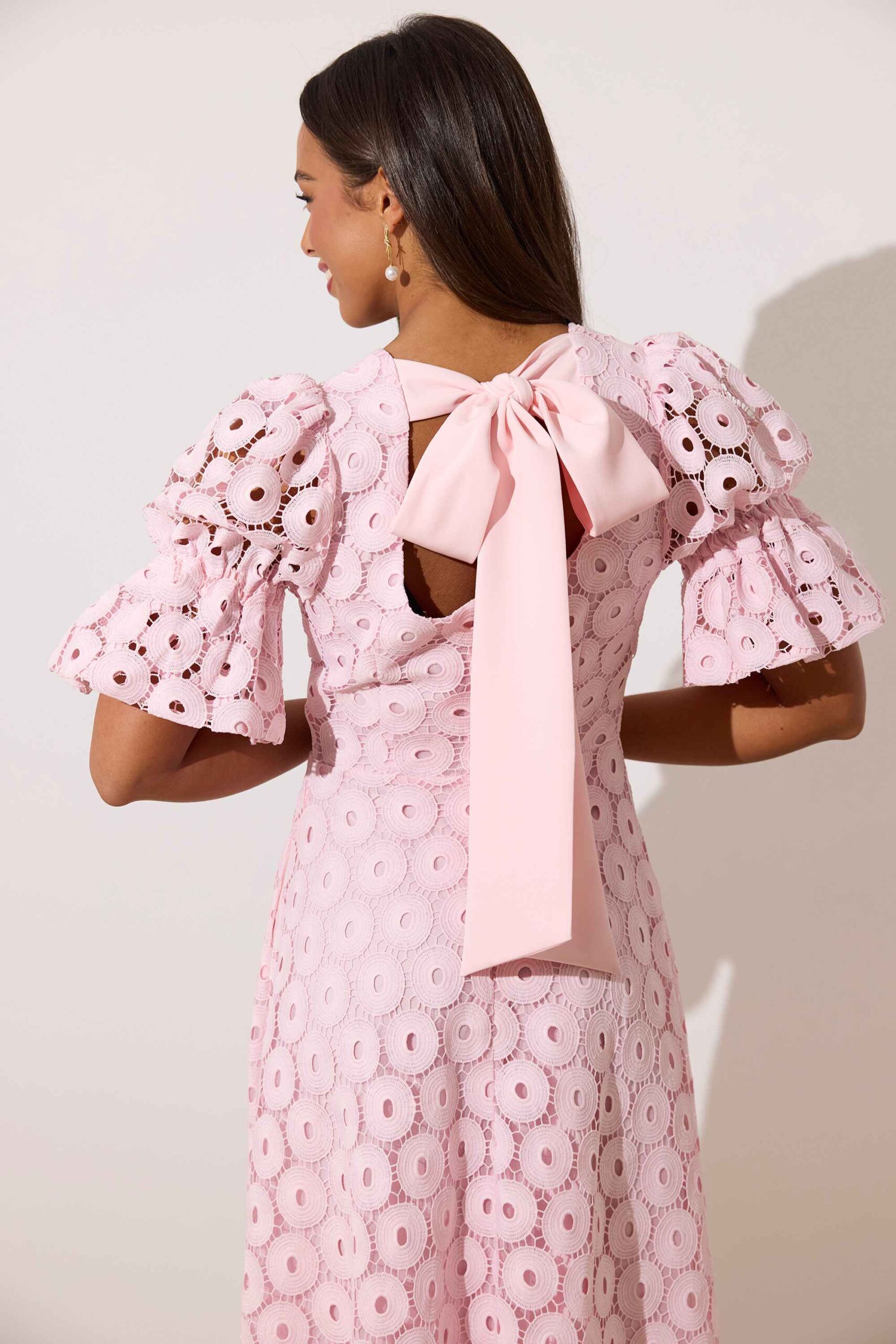 Callie Lace Bow Back Midi Dress Pink