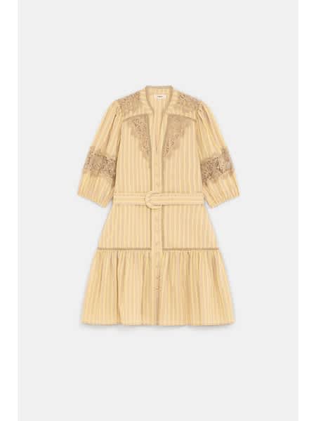 A very unique yet classic colour combo stripe dress with intricate lace trim detail and waist belt detail.