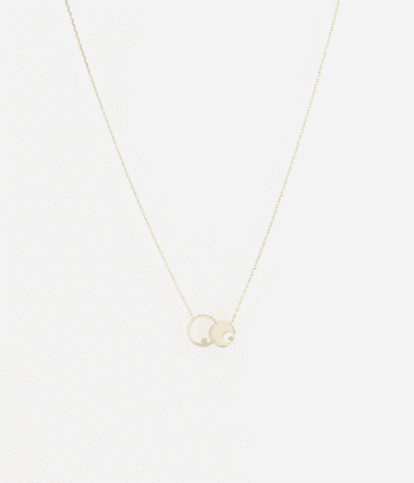 Necklace made of plain or golden-plated steel on which two circles are attached.
