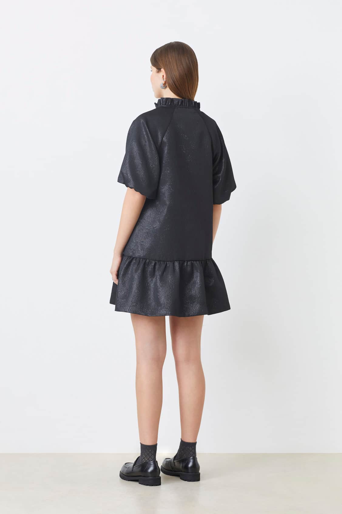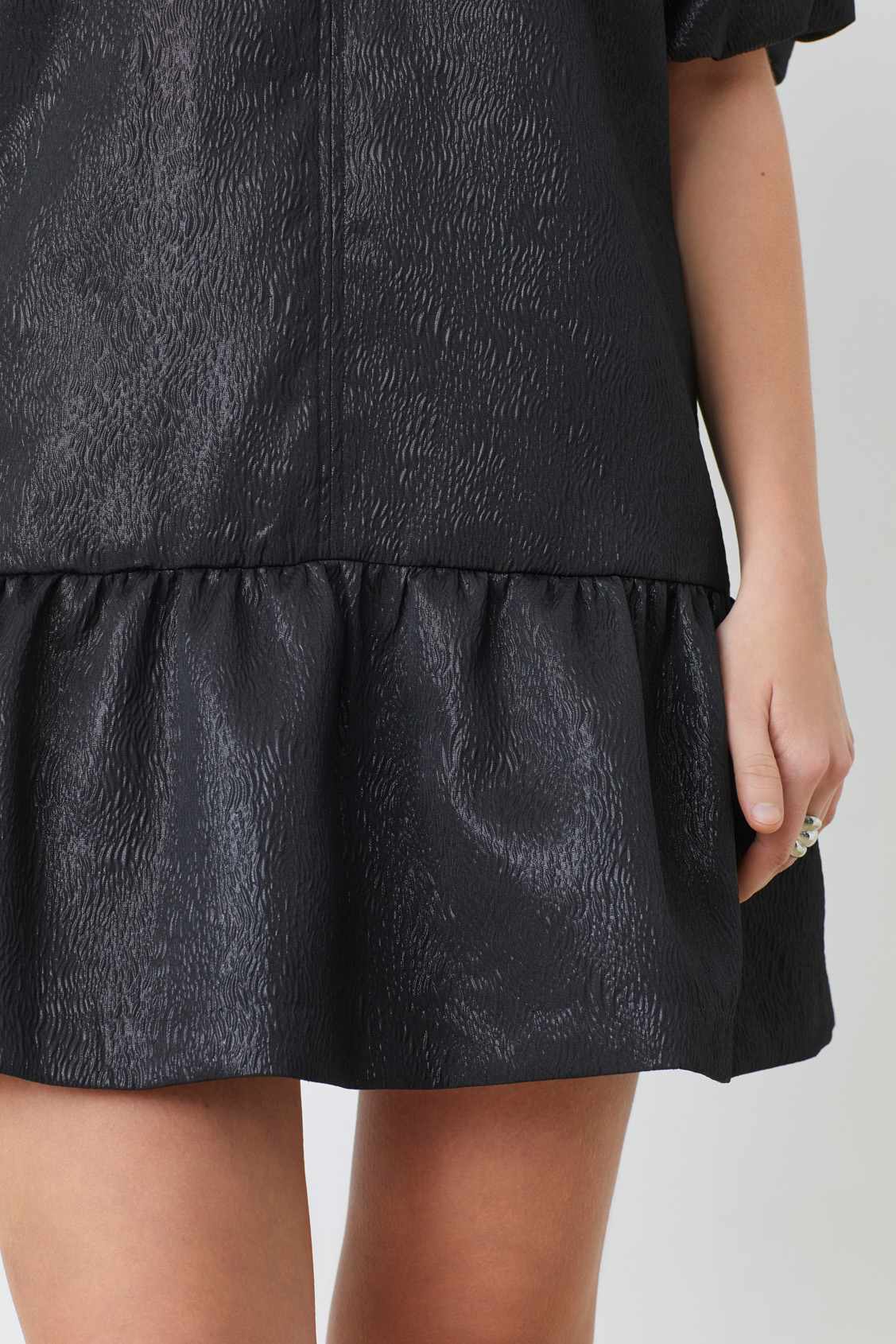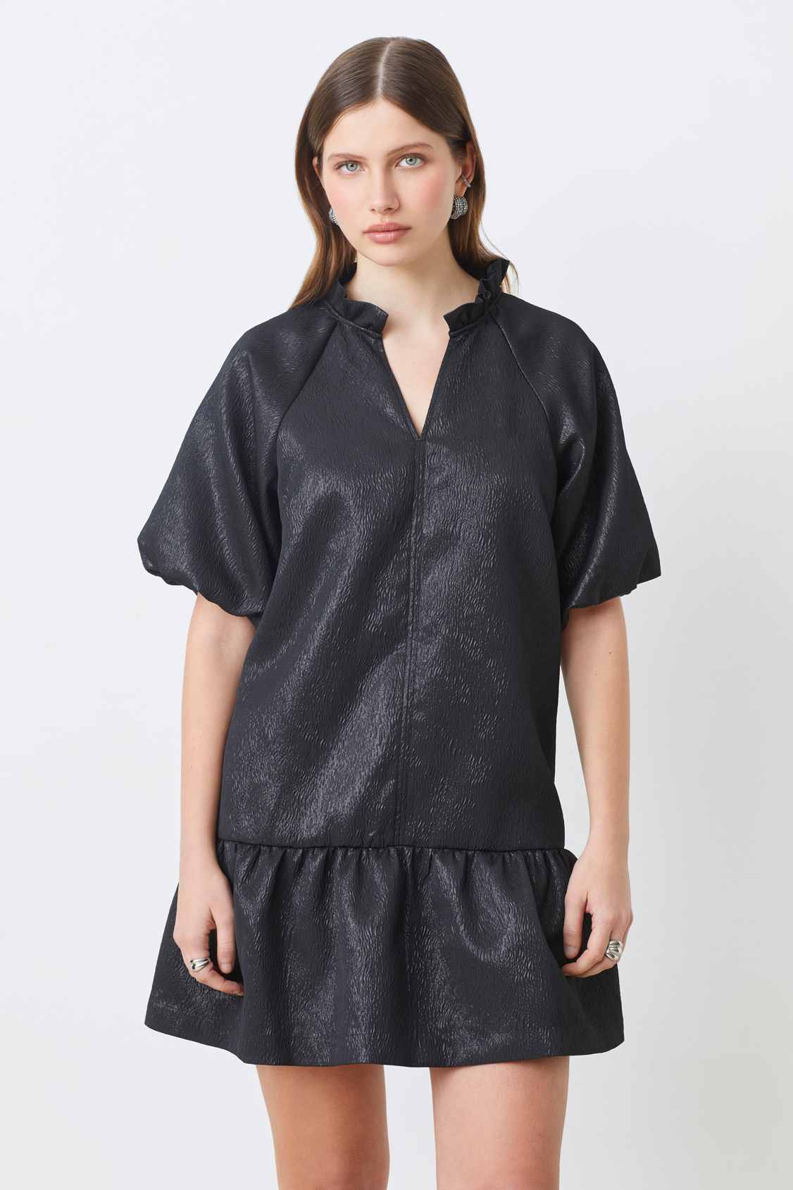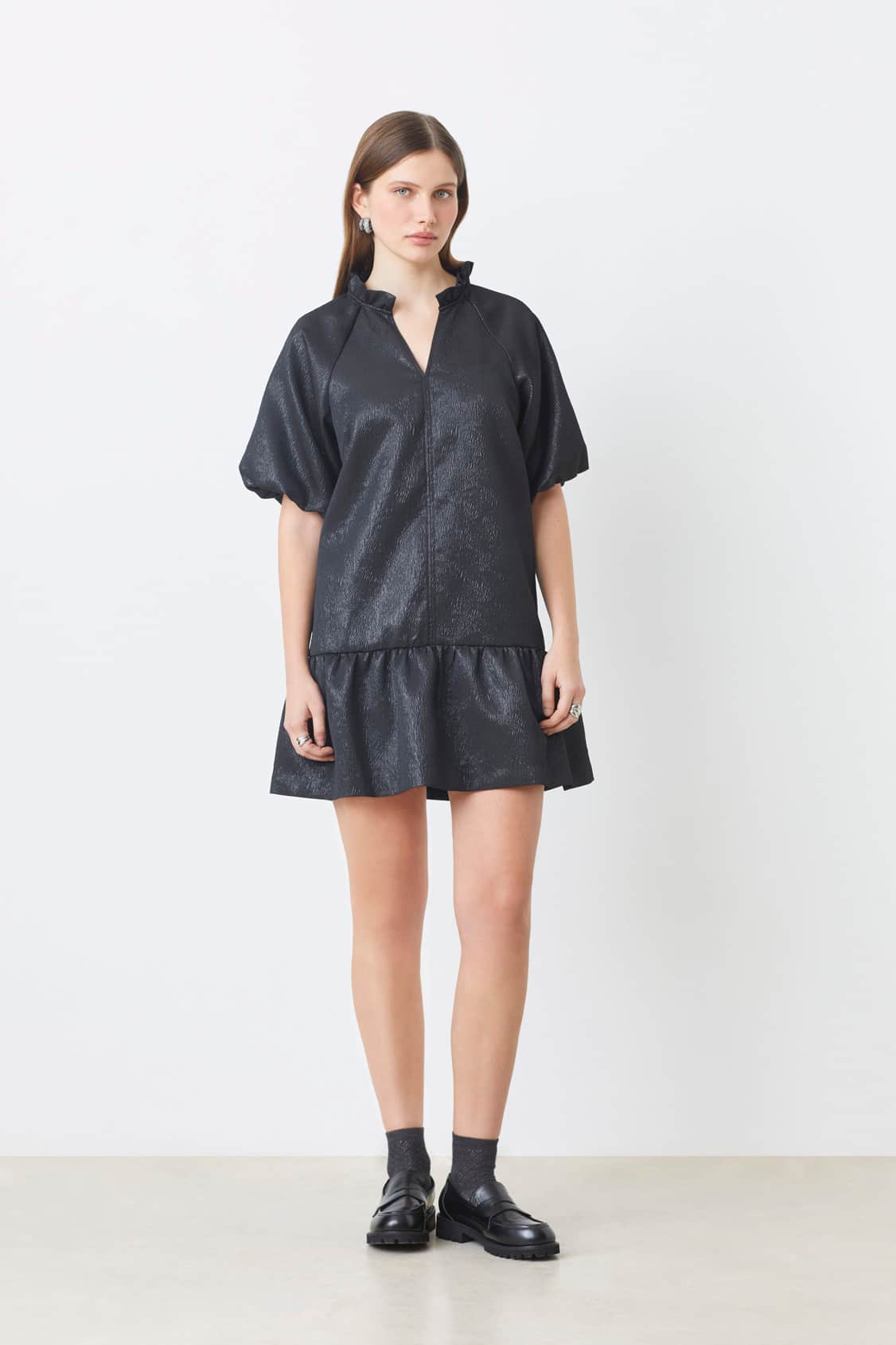 A gorgeous & classic yet fun little black dress. Smock style with metallic silver thread throughout fabric.
