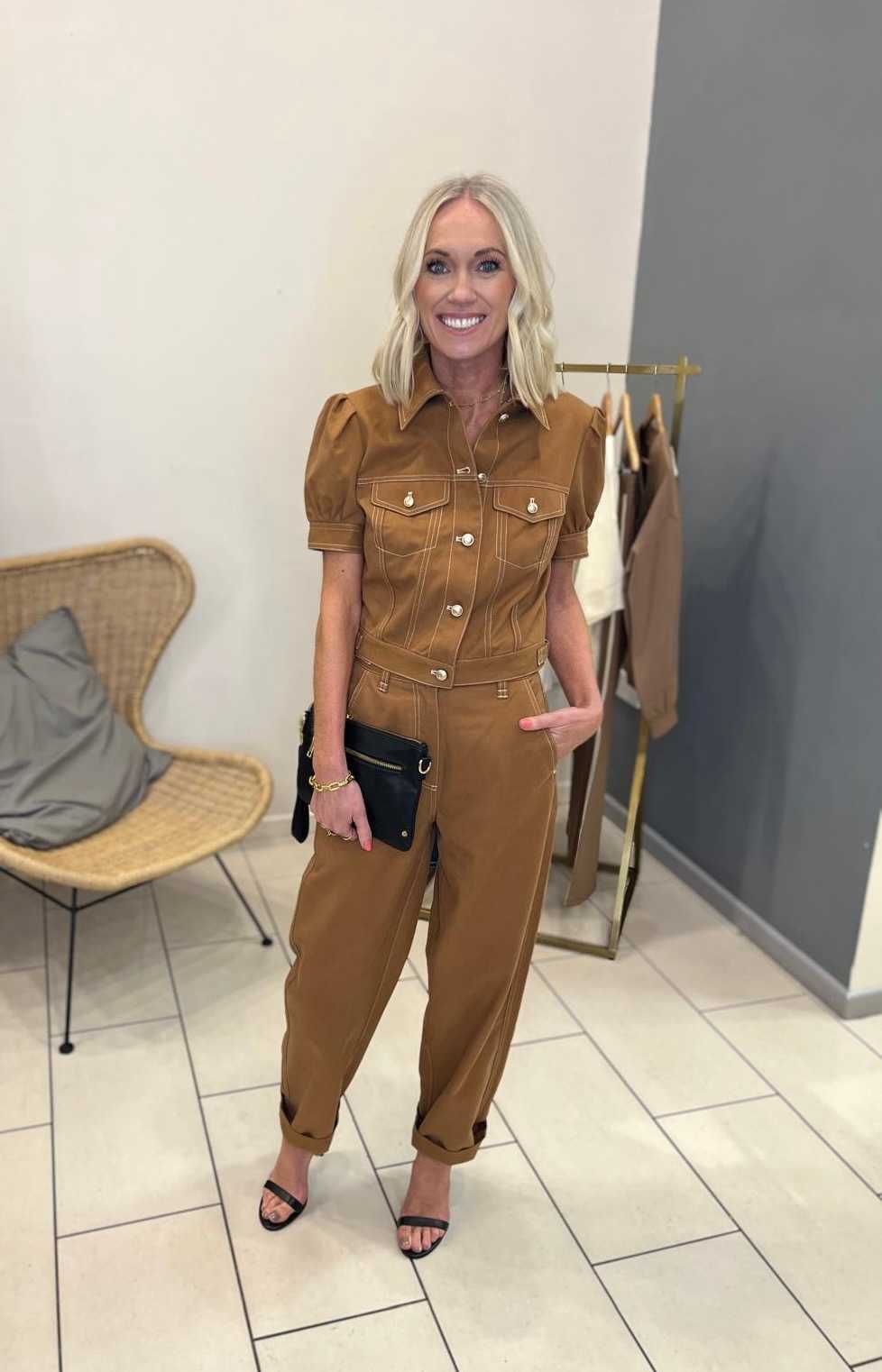 High waist straight leg gorgeous coffee colour trouser. Fabric is a cotton & lyocell blend giving it a supersoft touch and they almost have a denim look.