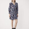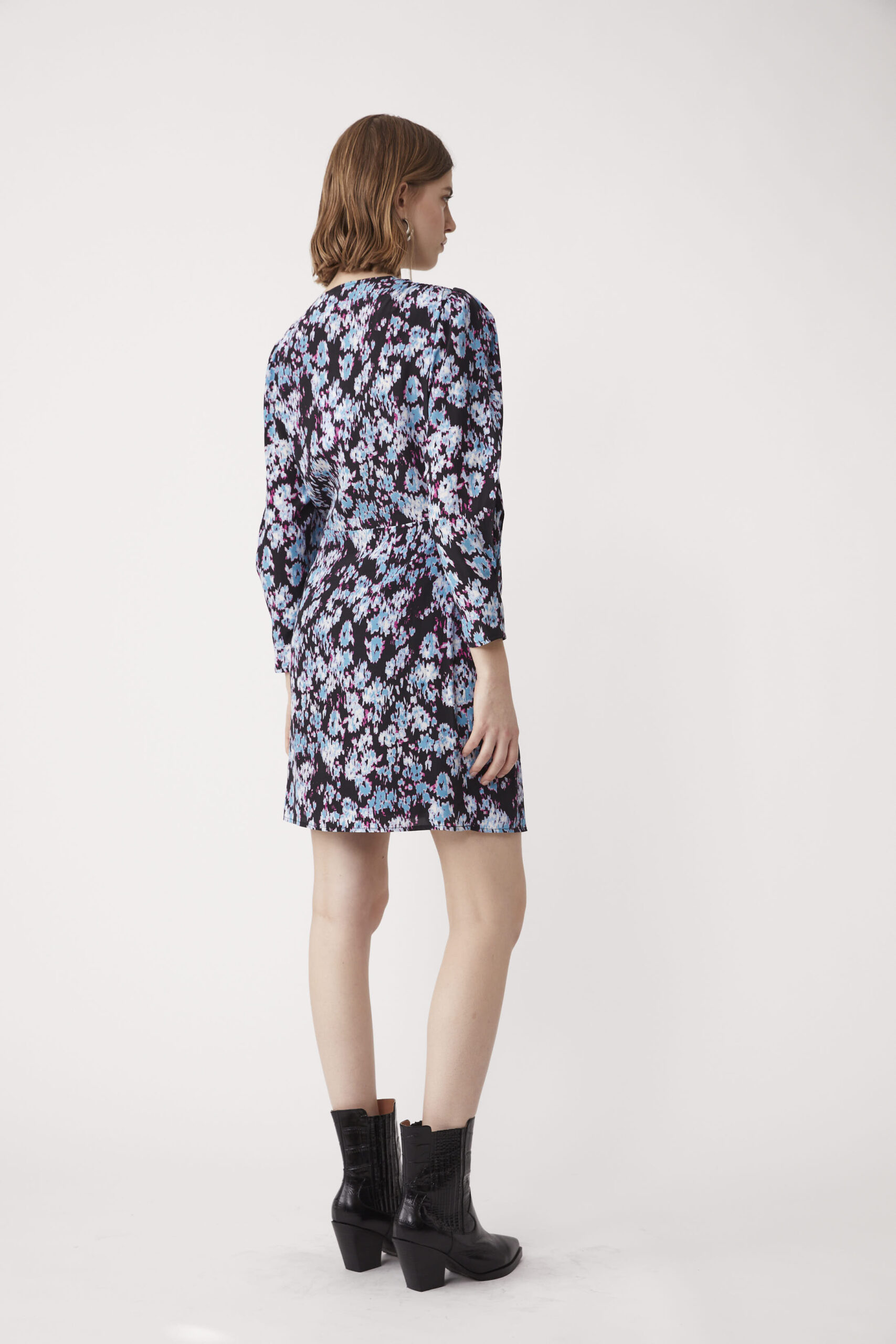 Wrap style knee length dress, with slightly padded shoulders and long sleeves. This dress has a side zip and the skirt is lined.