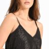 This camisole portrays a vintage touch with its tone on tone leopard print. This feminine and delicate camisole has a V neckline front and back with a lace detail and fine adjustable straps. It also has a beautiful satin feel, perfect for a night out.