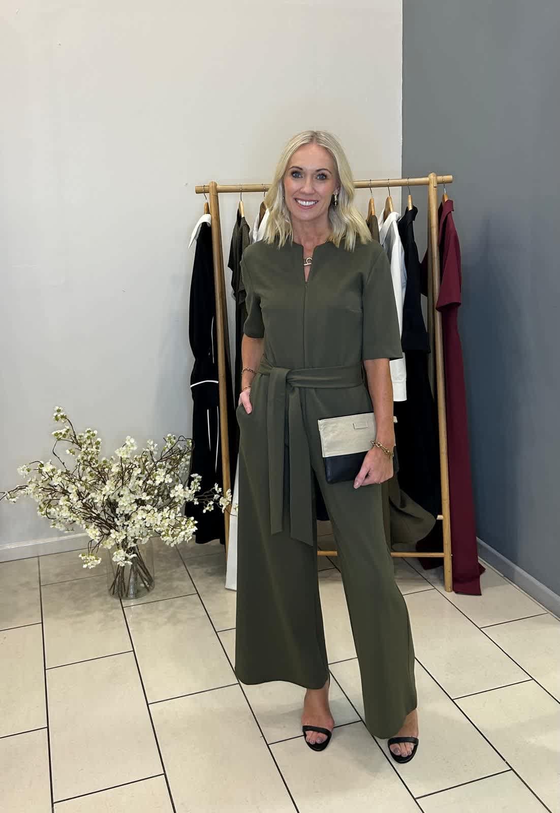 A classic and easy to wear khaki jumpsuit from Exquise to take you anywhere.