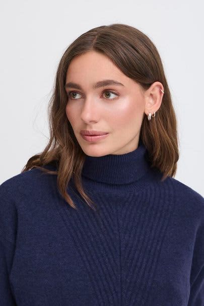 Classic ribbed detail poloneck knit. Goregous with any prints or hounstooth prints.