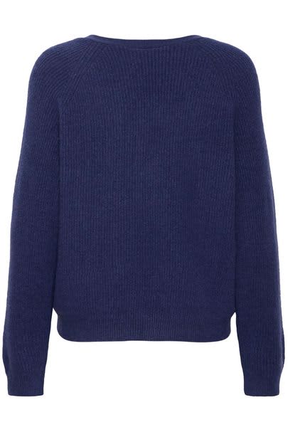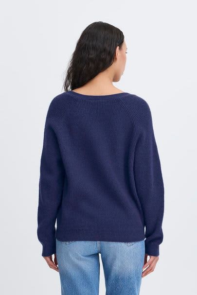When opting for basics in your wardrobe a navy knit is a must. This V neck ribbed knit has a lovely stretch in the material and has long sleeves. It sits nicely on the waist and looks perfect with a pair of blue jeans. Simple yet effective and a necessary item for your Autumn wardrobe.