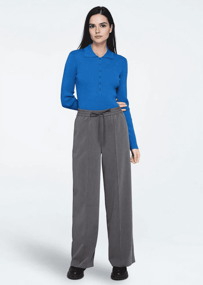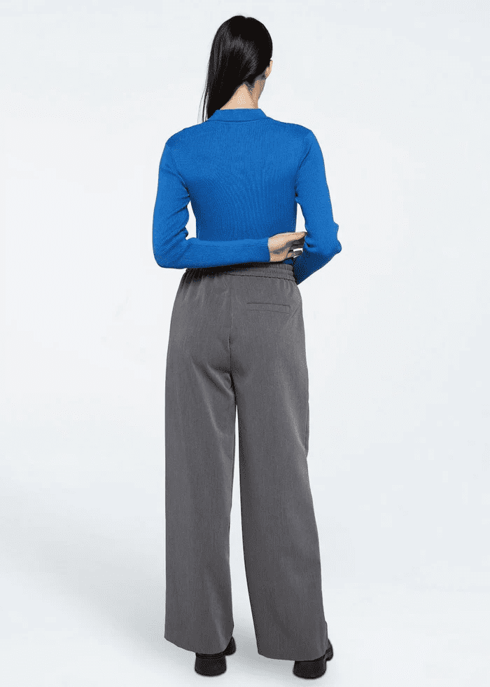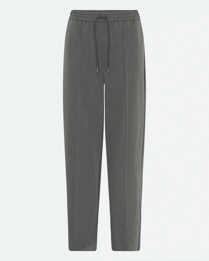 These charcoal grey trousers a perfect mix of tracksuit casual and chic relaxed chino sytle.