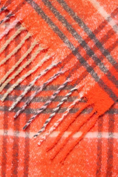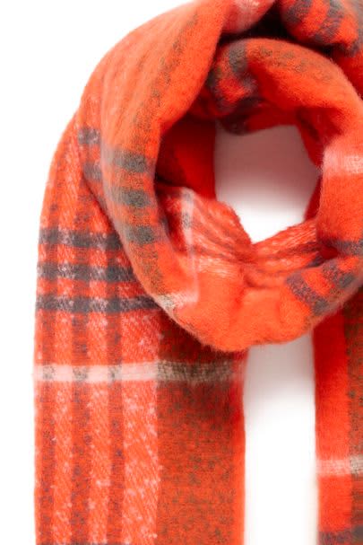Orange check, soft and fluffy scarf, a perfect way to brighten your outfit this Winter.