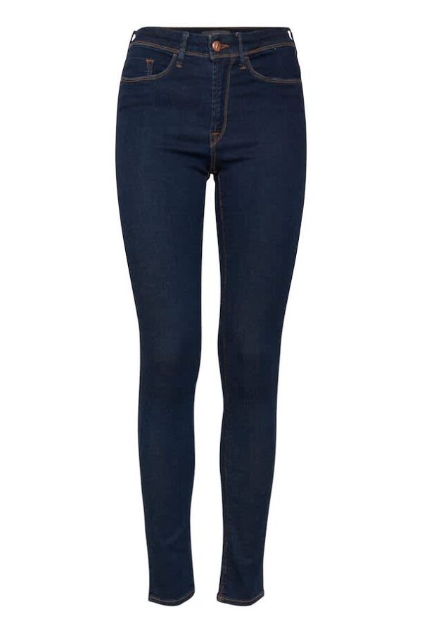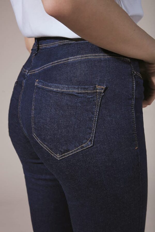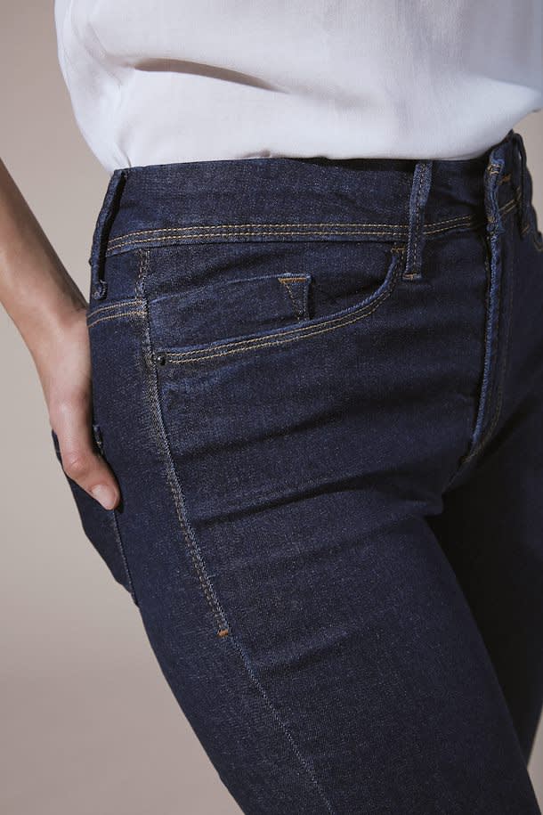 Indigo Wash Erin Jeans. Mid waist, full length. Fold at the hem to suit height.