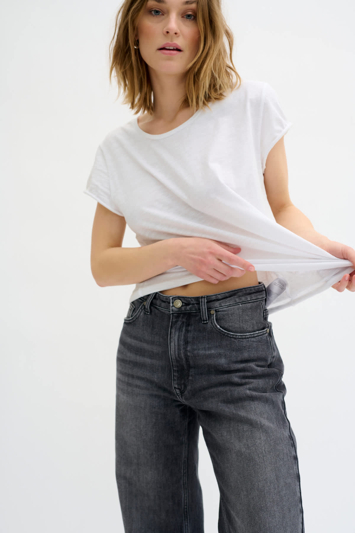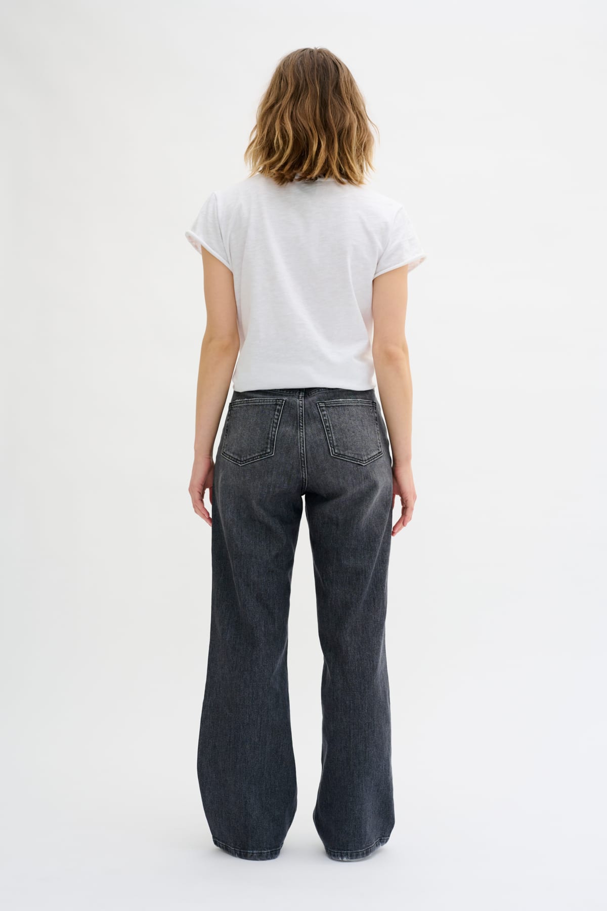 Super cool jeans from My Essential Wardrobe with wide legs and a high waist. The trousers are in a grey wash and have pockets both front and back, as well as belt loops at the waist. Available in 2 leg lengths so please select your choice of both size and length.