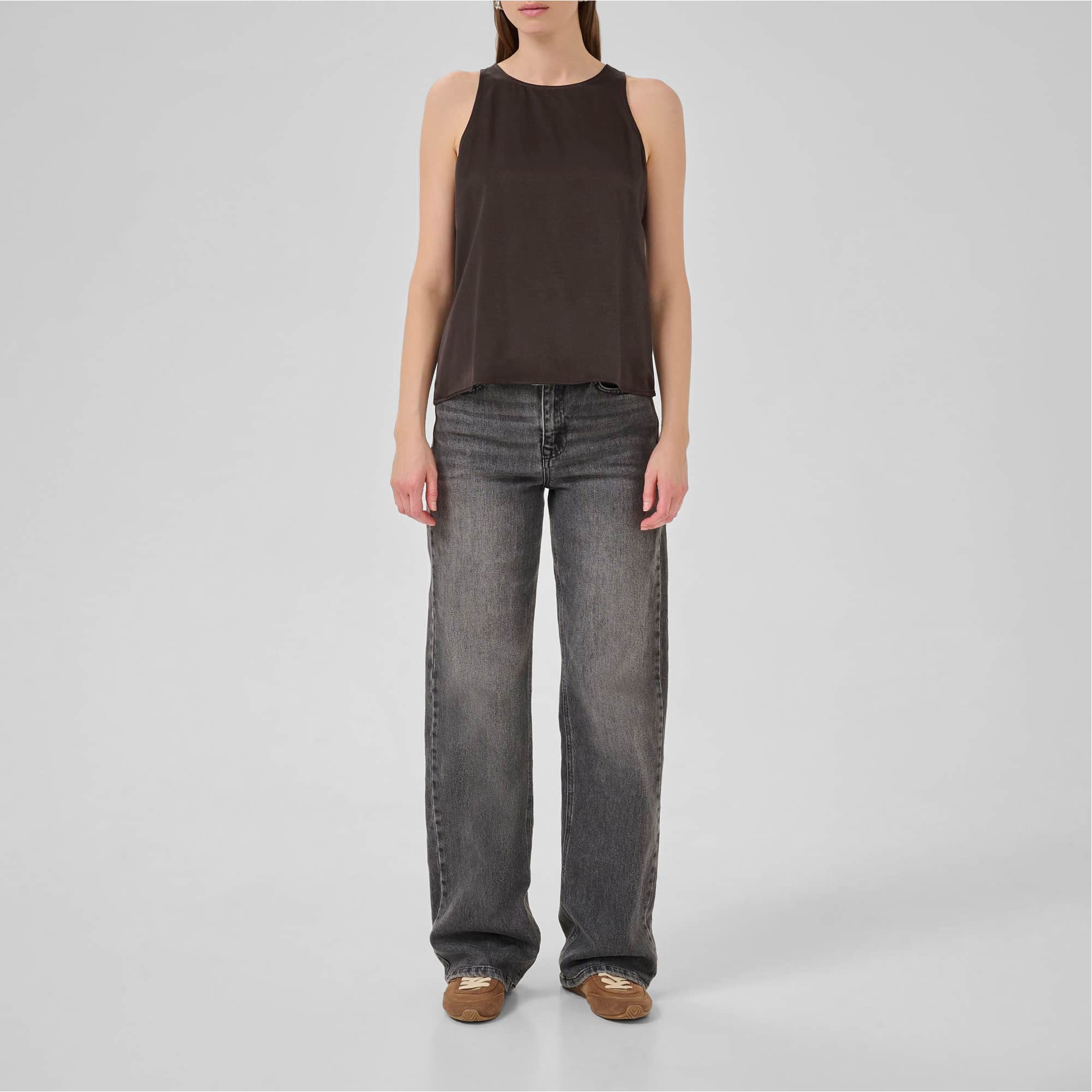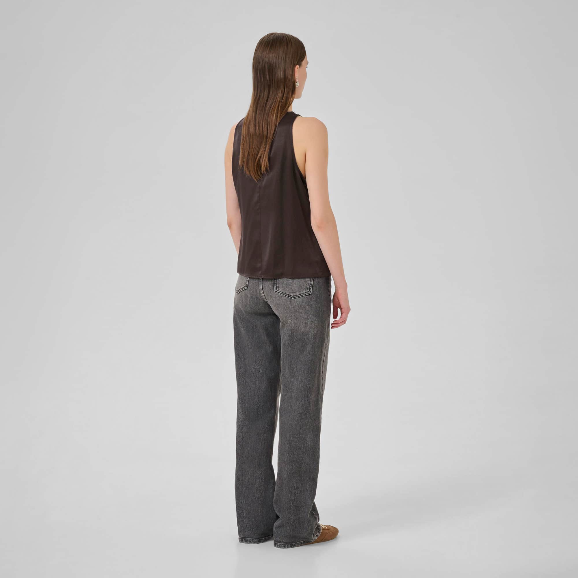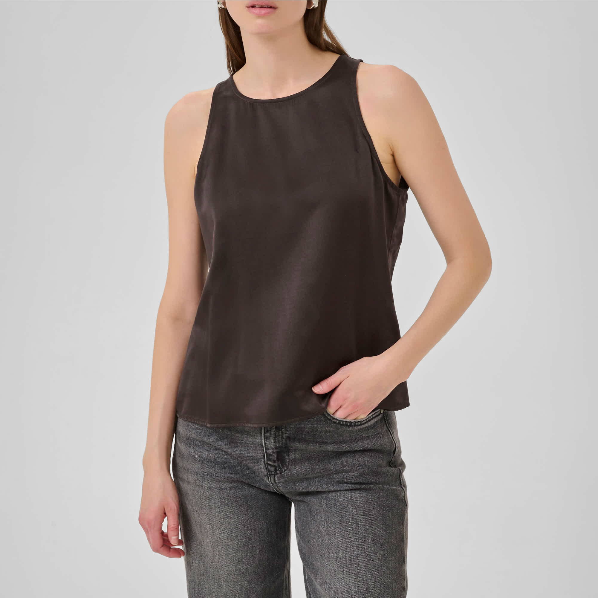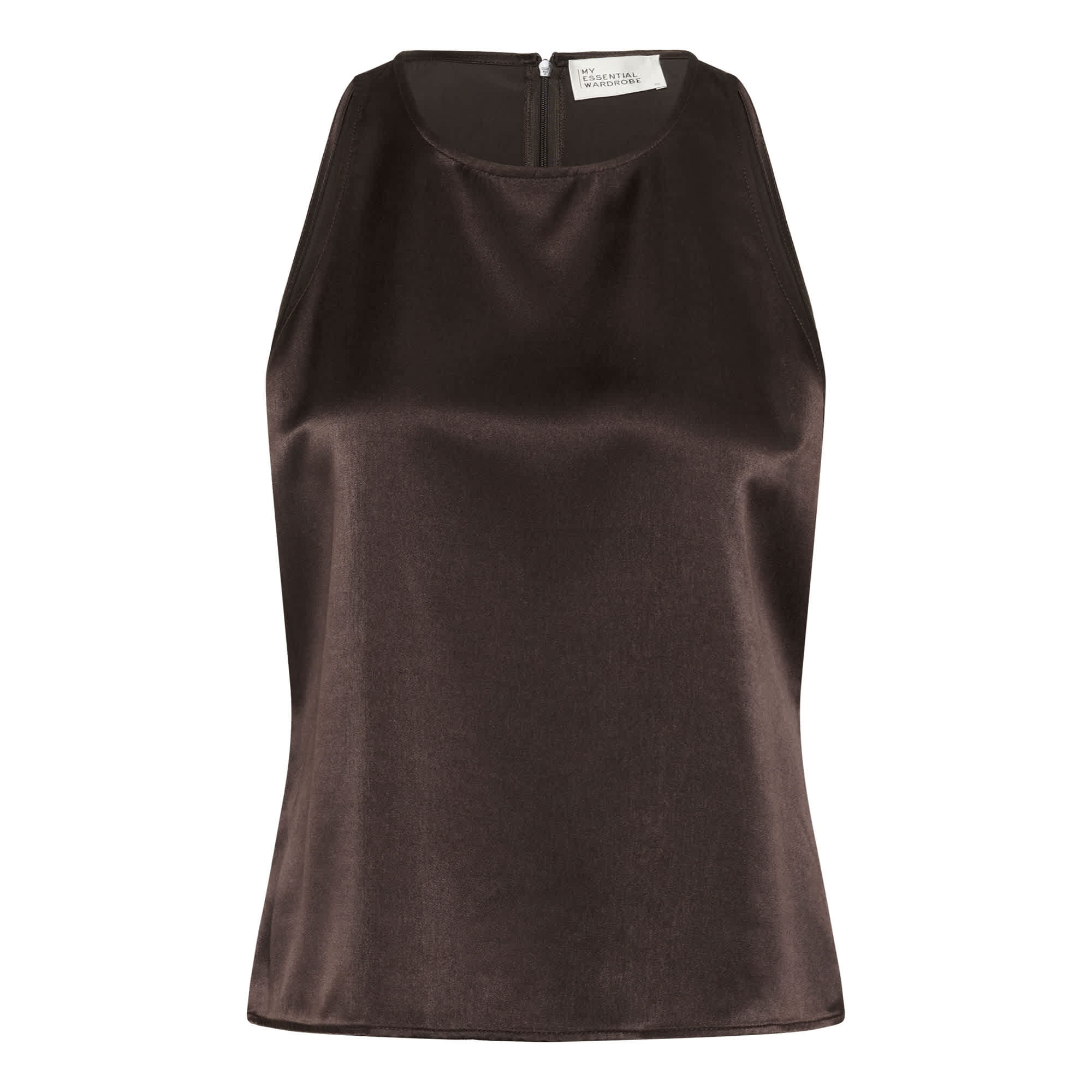 Gorgeously soft deep brown sateen sleeveless top, with zip close on the back of the neck. Worn perfectly with the coordinating Estelle Skirt Espresso