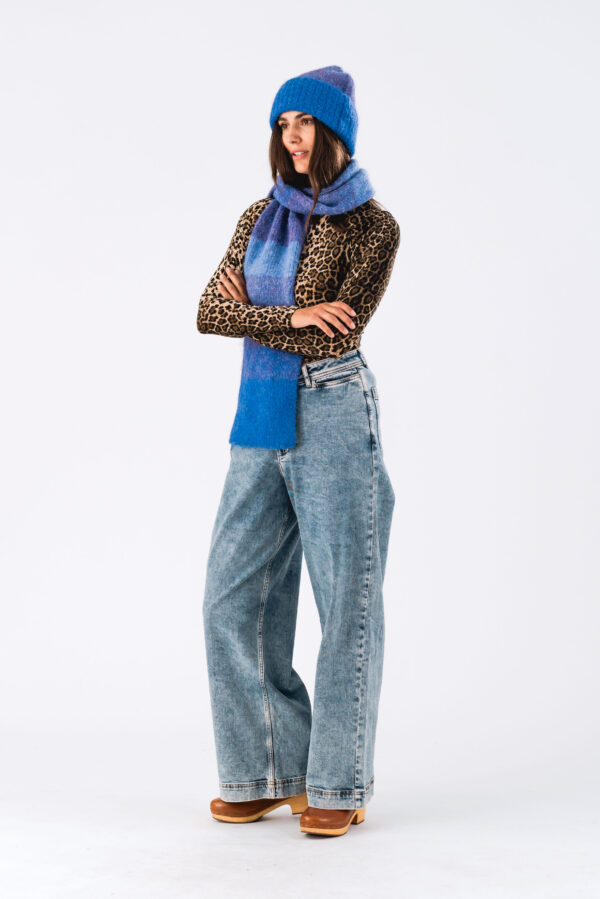 Beautiful knitted beanie to keep you warm while looking cute. The hat is made from the softest material, and comes in a lovely melange blue-purple color. It has a regular fit and is available in one size.