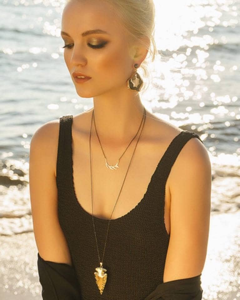 Each Aria-V piece is a tribute to the beauty of nature and inspired by an eclectic mix of references such as Tibetan, Indian, Aztec and Roman jewellery where oriental and urban influences come together in timeless designs. Varya uses semi-precious stones mixed with metals and crystals combining unusual textures with bold colours to create statement but versatile pieces.