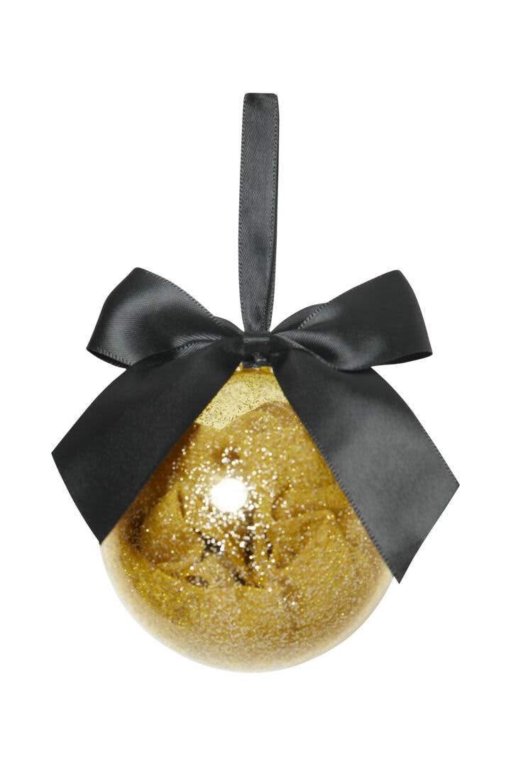 Great gift idea! Sparkly bauble which includes a pair of metallic gold socks, with a ribbon bow hook for your Christmas tree!