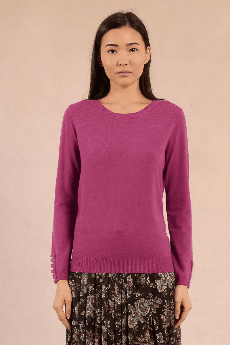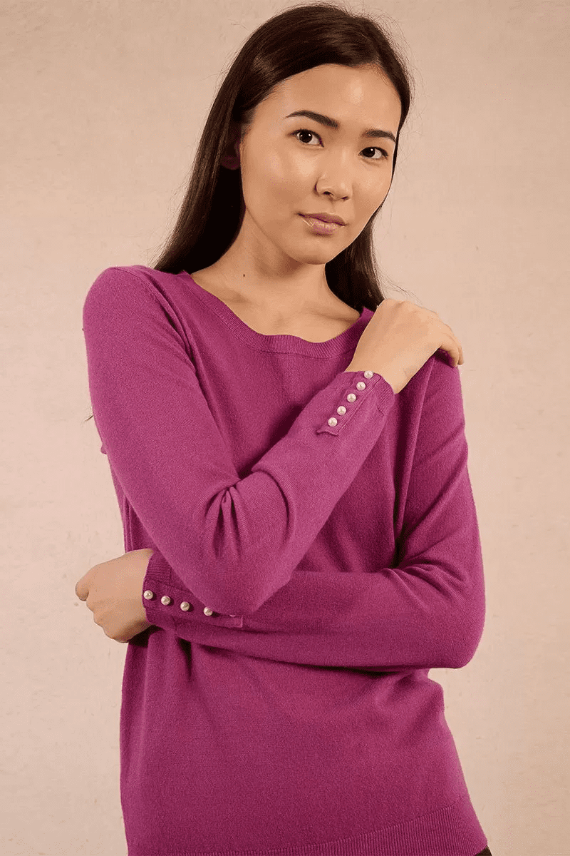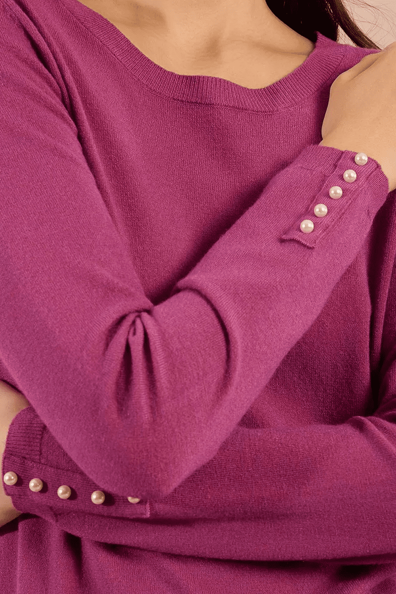Fine soft knit with pearl detail on the cuff and back of the neck.