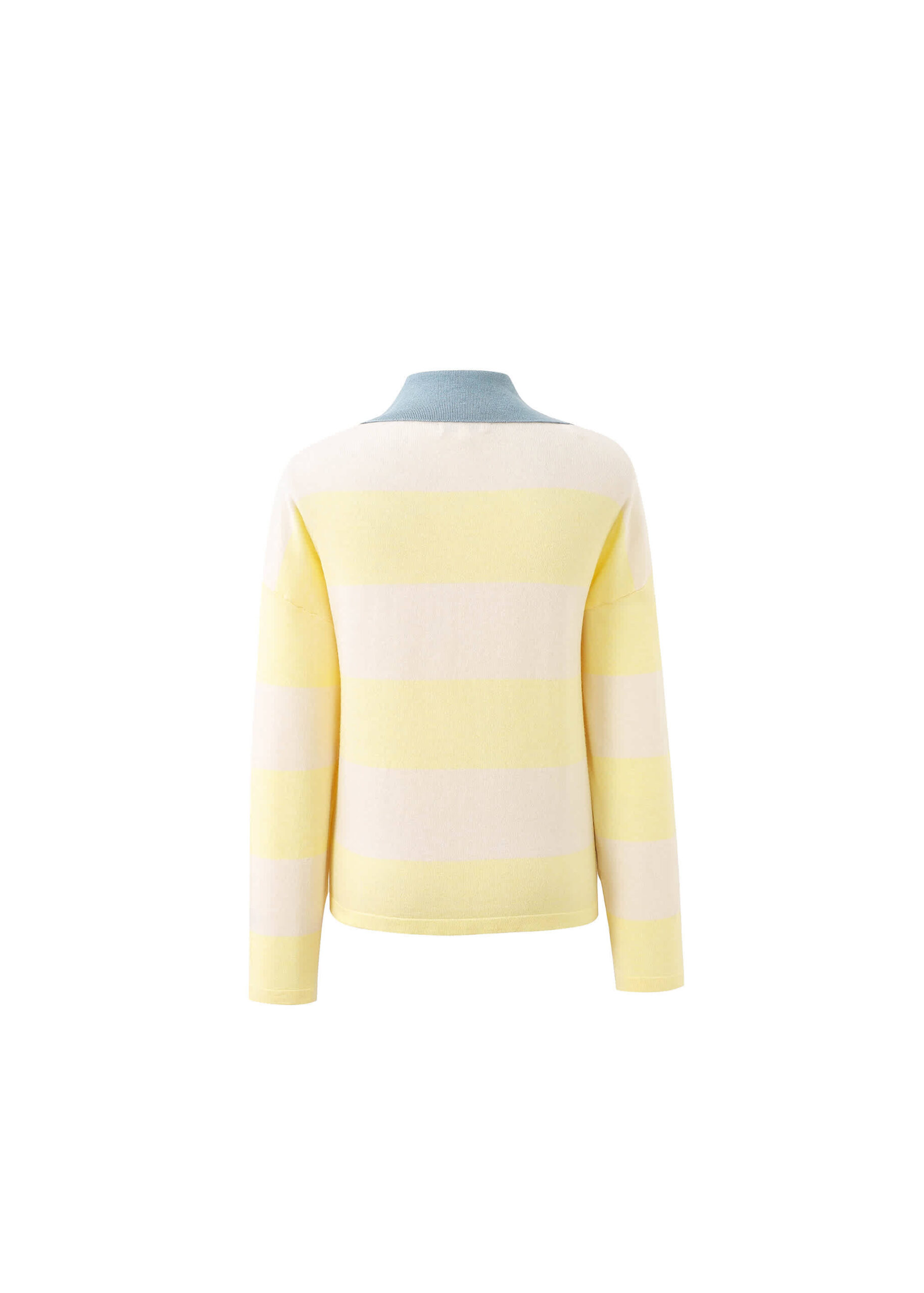 Super soft long sleeve striped knit with collared v-neck.