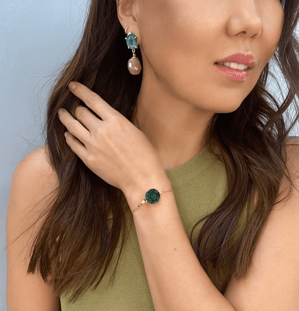Each Aria-V piece is a tribute to the beauty of nature and inspired by an eclectic mix of references such as Tibetan, Indian, Aztec and Roman jewellery where oriental and urban influences come together in timeless designs. Varya uses semi-precious stones mixed with metals and crystals combining unusual textures with bold colours to create statement but versatile pieces.