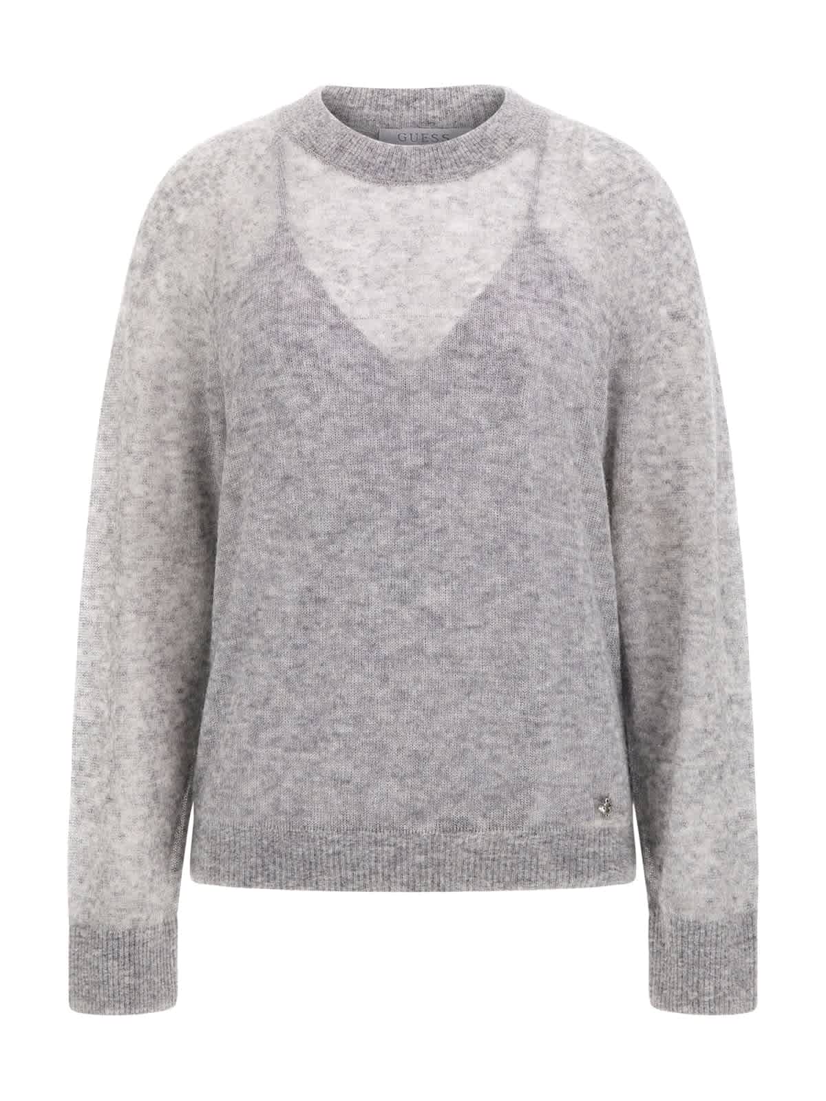 A unique and classic piece from Guess. A silver satin v neck cami & stunning alpaca blend round neck jumper.