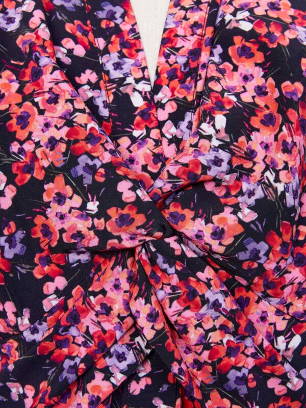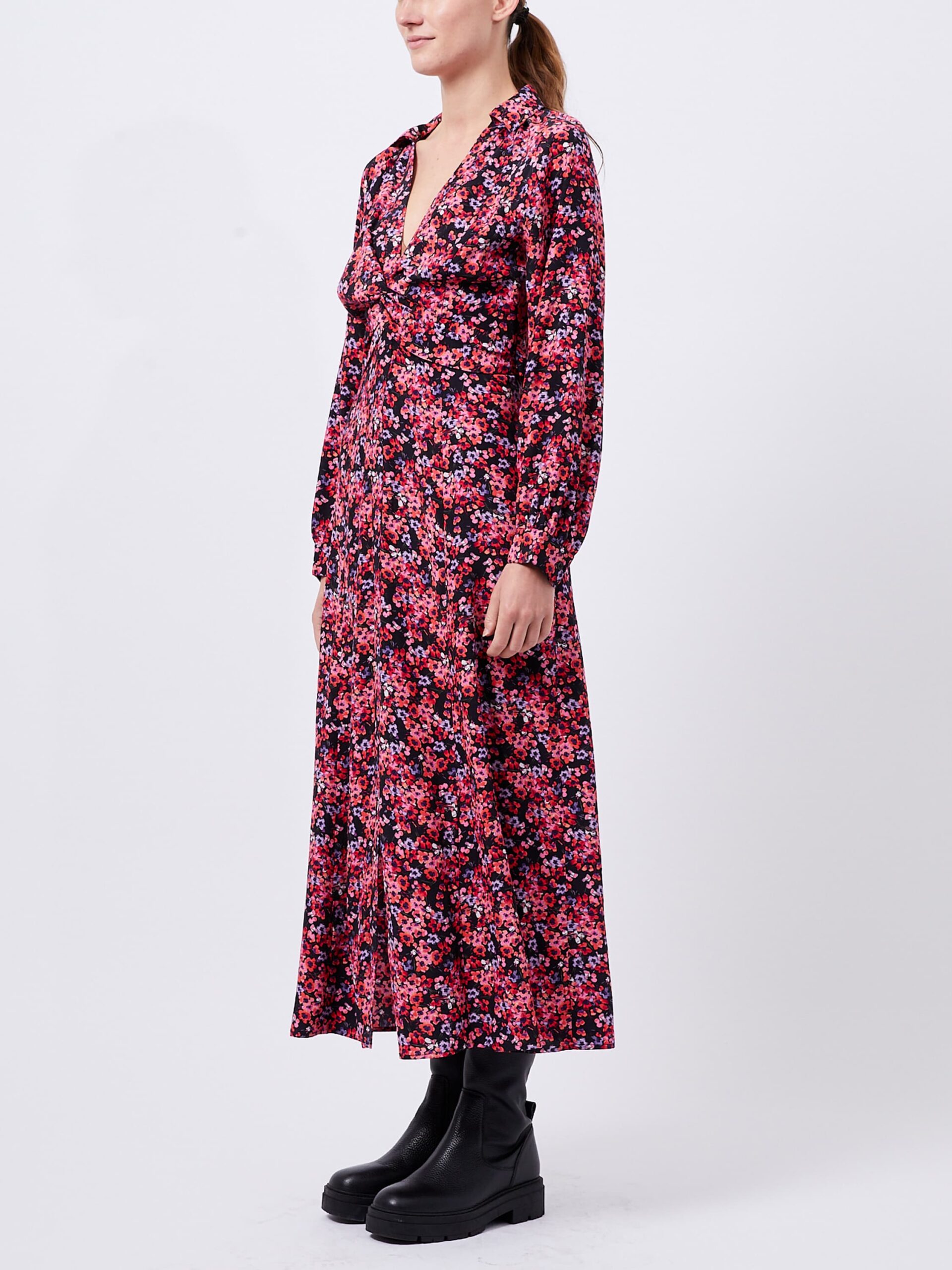 Colourful floral maxi dress, with long sleeves, v-neckline and twist detail front.