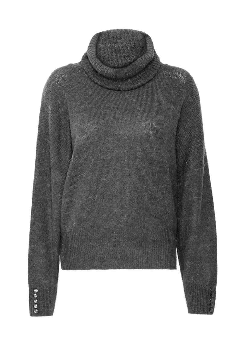 This women’s turtleneck sweater features a relaxed fit, cozy high neckline, and long sleeves with decorative buttons. Designed for comfort and easy layering, it offers timeless style ideal for both everyday wear and smart-casual looks.