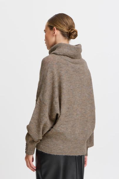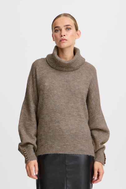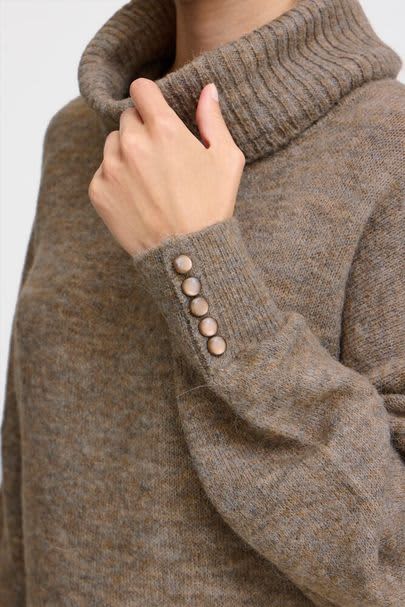 This women’s turtleneck sweater features a relaxed fit, cozy high neckline, and long sleeves with decorative buttons. Designed for comfort and easy layering, it offers timeless style ideal for both everyday wear and smart-casual looks.