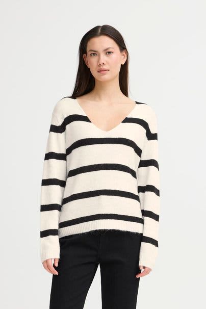 You just cant go wrong with a stripe knit. Thid beauty can be worn looseover denim or tucked in. Cosy long sleeve and flattering v neckline ensures it’s suitable for everyone!