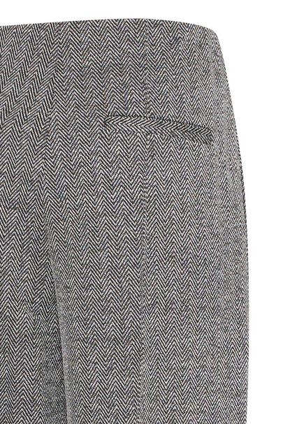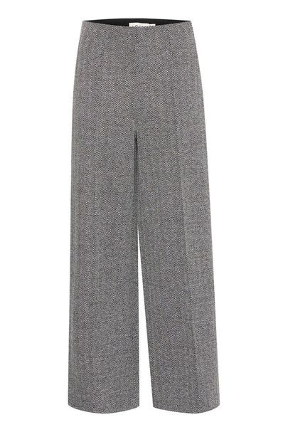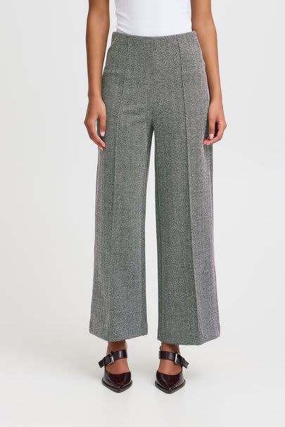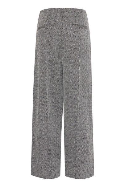 Wide leg Kate pants in a black and white herringbone pattern. The pants have a front seam and side zip for a very flattering shape. Worn perfectly with the matching Kate Blazer Black Herringbone