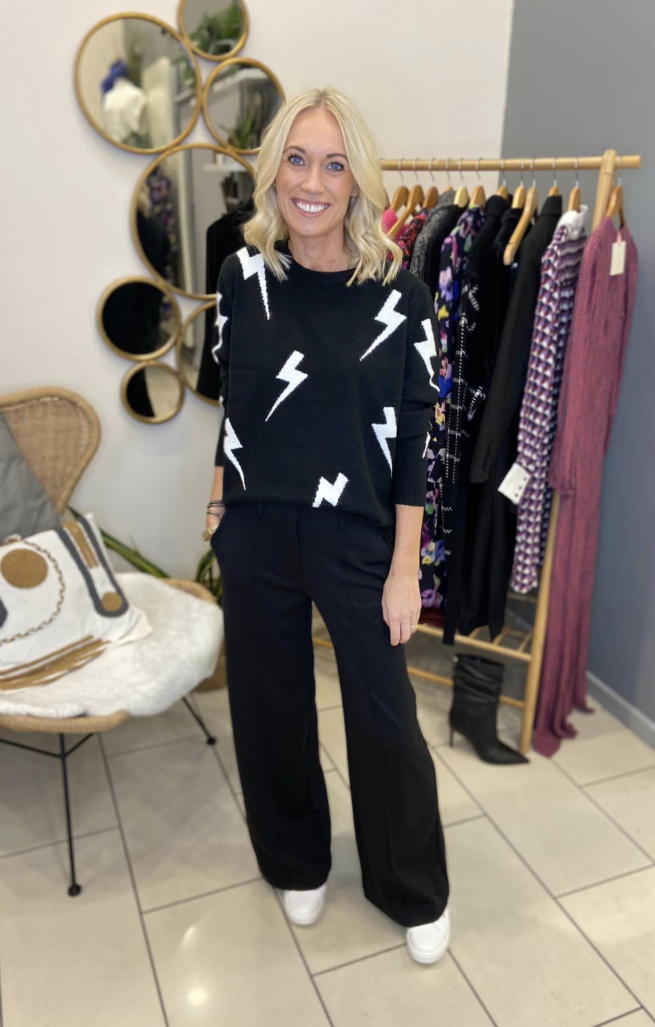 Wide leg soft jogger, with pockets and fly front.