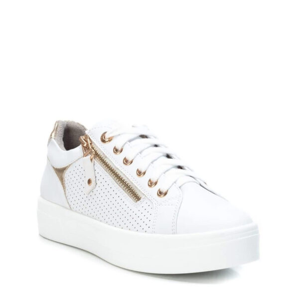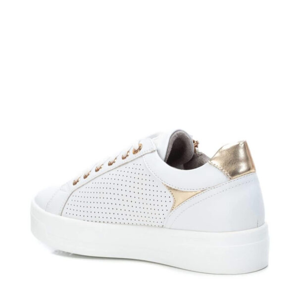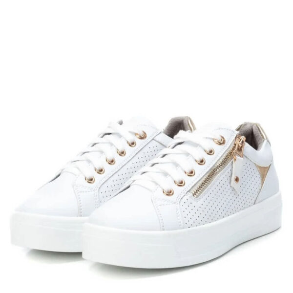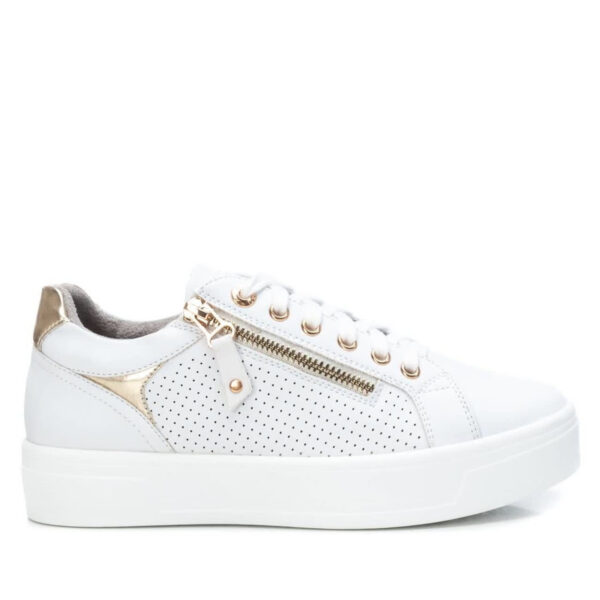 Women’s shoe, Xti brand. Made of material that imitates leather with a dotted side. Zip fastening on the side, with decorative laces. Non-slip rubber sole. This model has been certified vegan by the world organization PETA (Organization for Animal Rights).