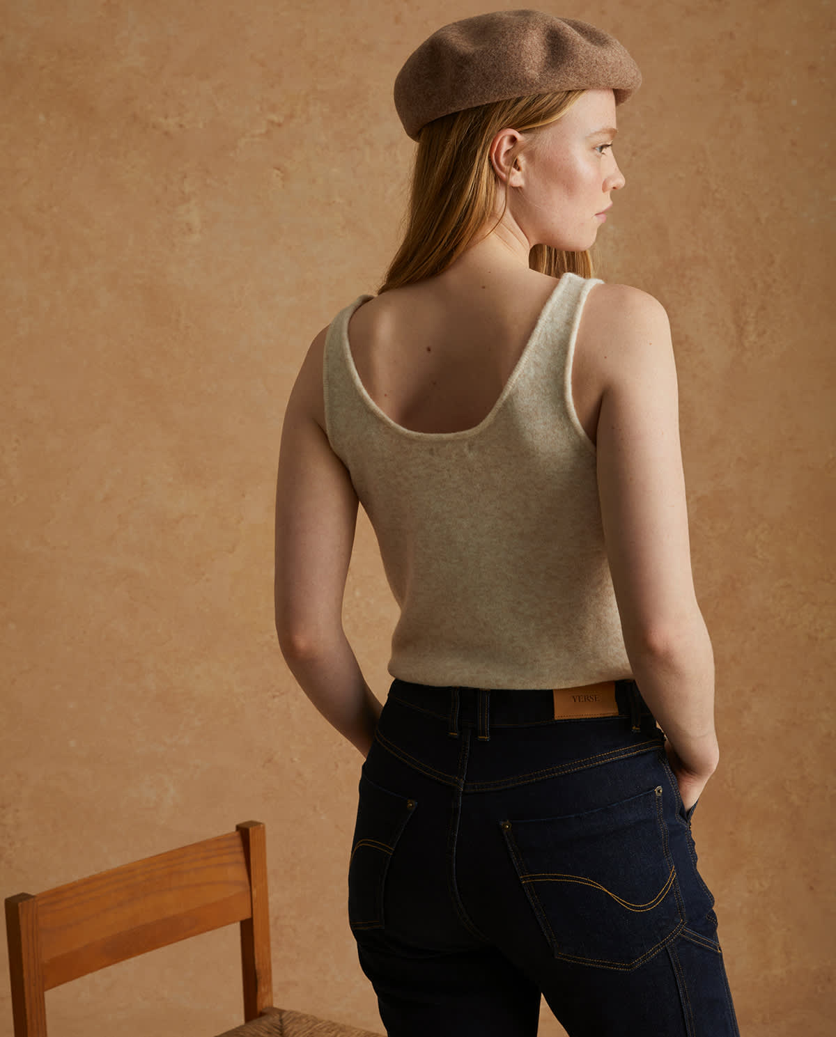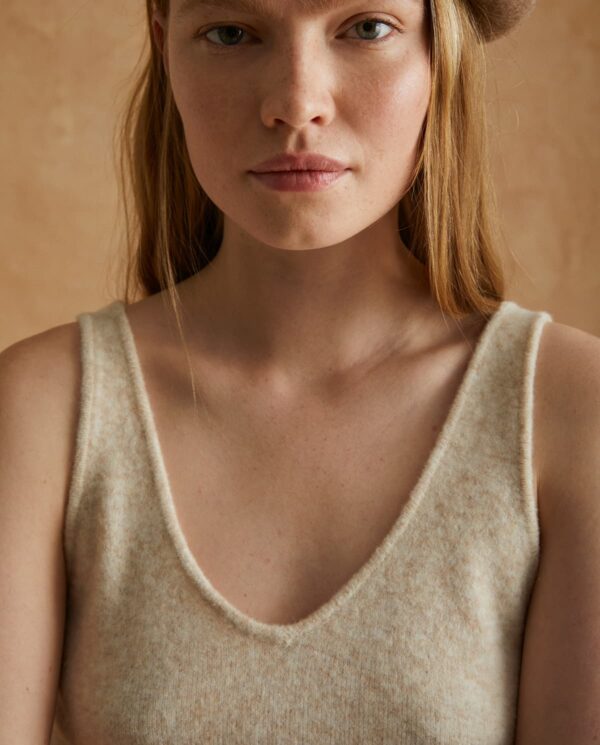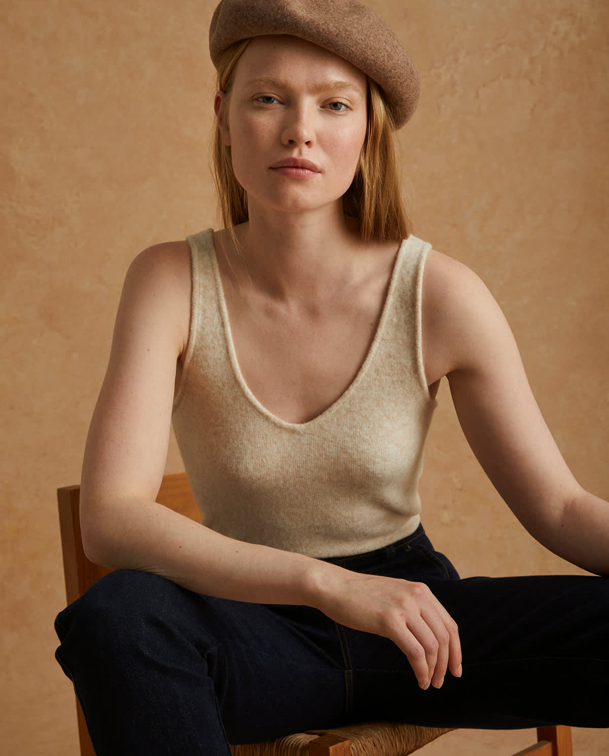 Luxuriously soft V-neck camisole knit top. A classic staple for the autumn winter season. Pair it with the Yvette Cardigan for beautiful cosiness as the colder weather creeps in.