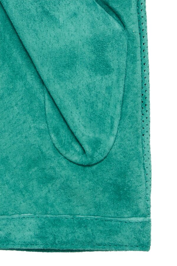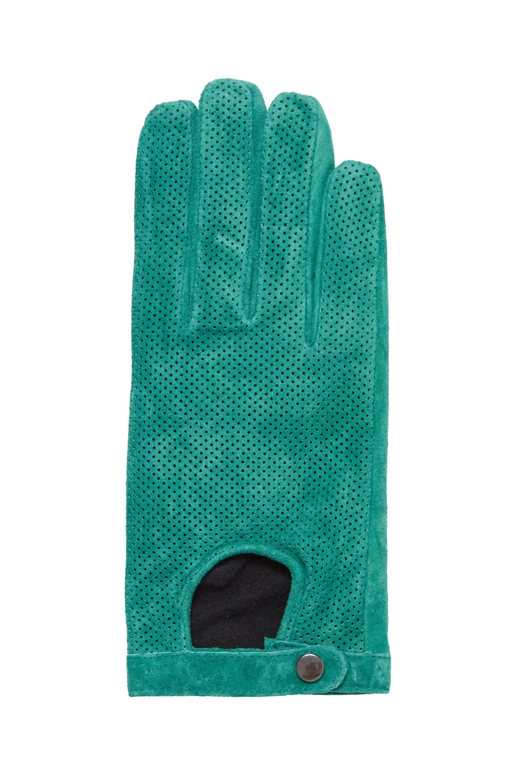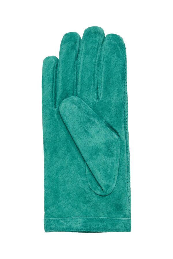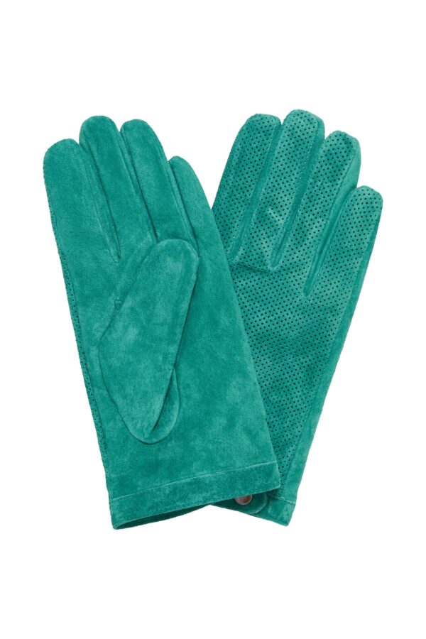 Stylish green suede gloves with stud fastening. A gorgeous gift to yourself or someone else…